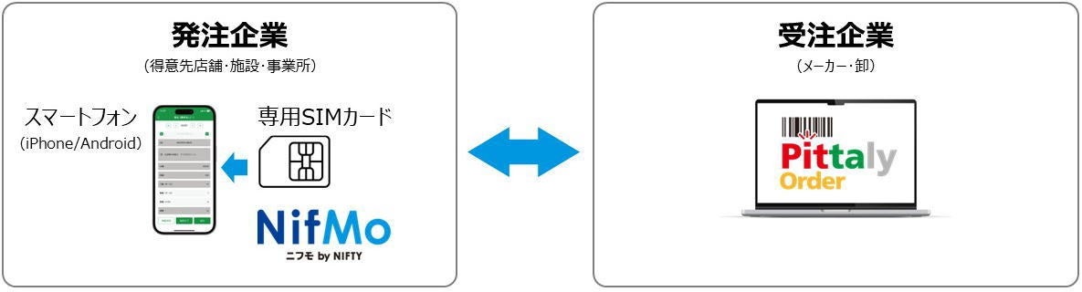 本連携により、ユーザックシステムが提供する発注業務効率化サービス「Pittaly Order(ピッタリー オーダー)」と、ニフティのMVNOサービス「NifMo(ニフモ)」を組み合わせることで、安定した通信環境とコスト削減を両立し、小売・流通業界の発注業務のデジタル化を後押しします。