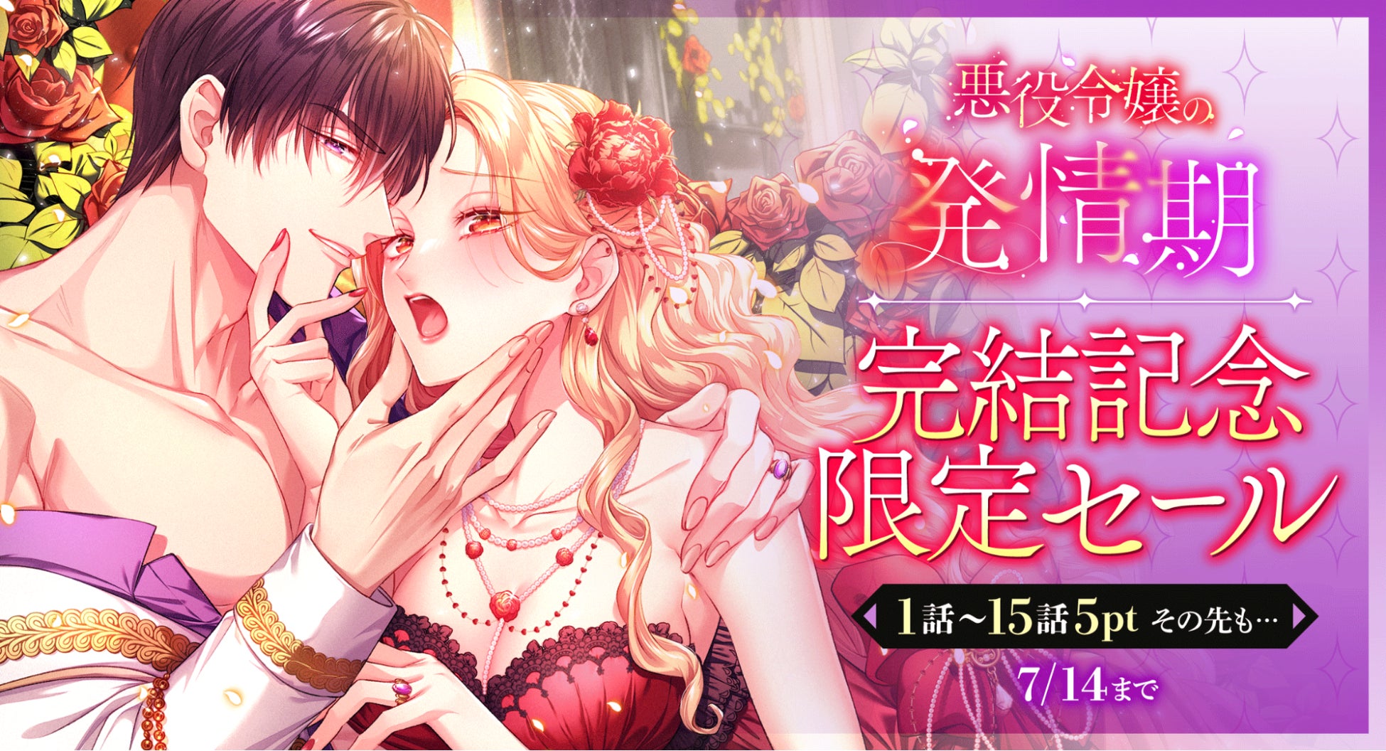 『悪役令嬢の発情期』の完結を記念し、7月1日(火)から2週間限定で、ComicFestaにて以下の特別セールを実施します。