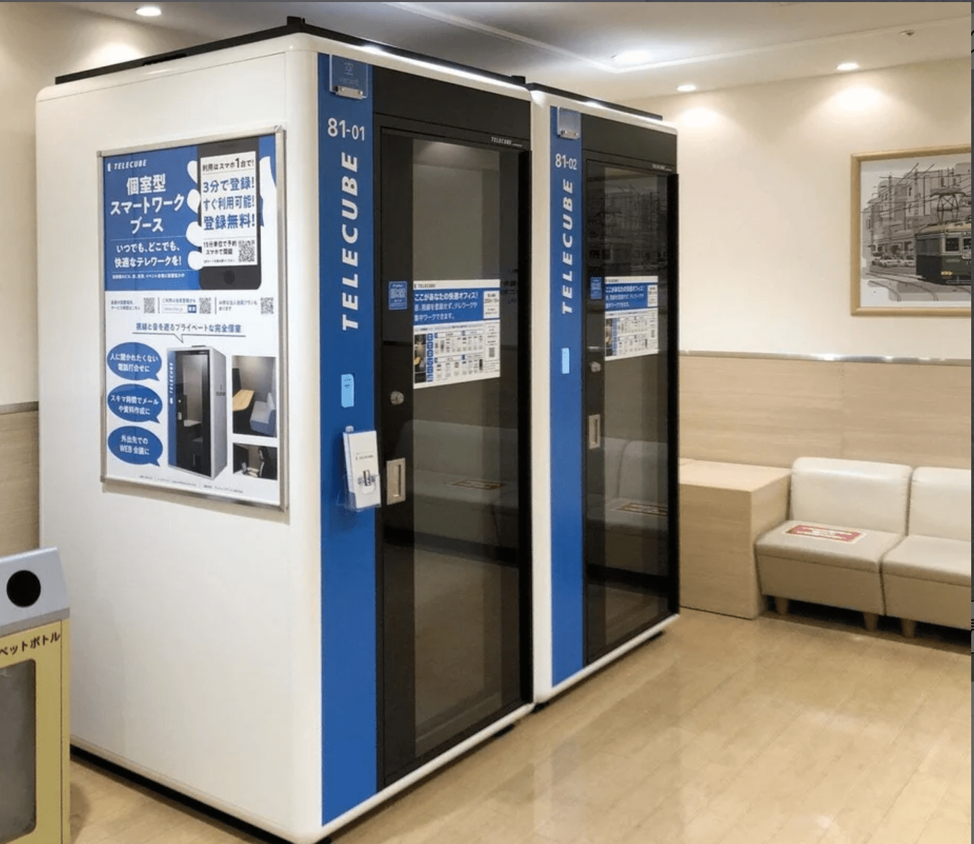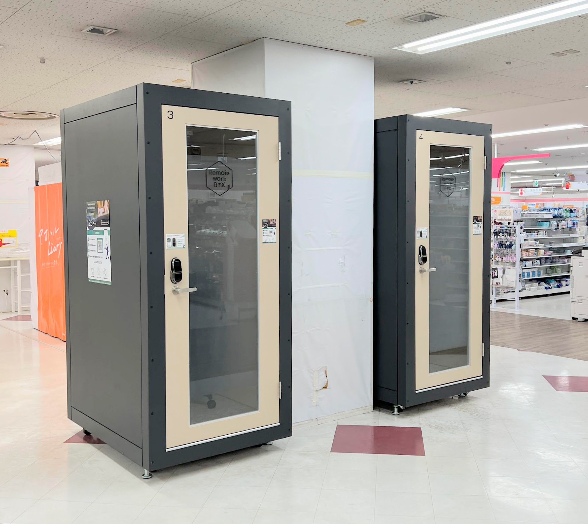 *ワークボックス:1〜2人でのテレワーク、WEB会議、自習、PC作業に適した個室空間。Wi-Fi、机、椅子などを備える。