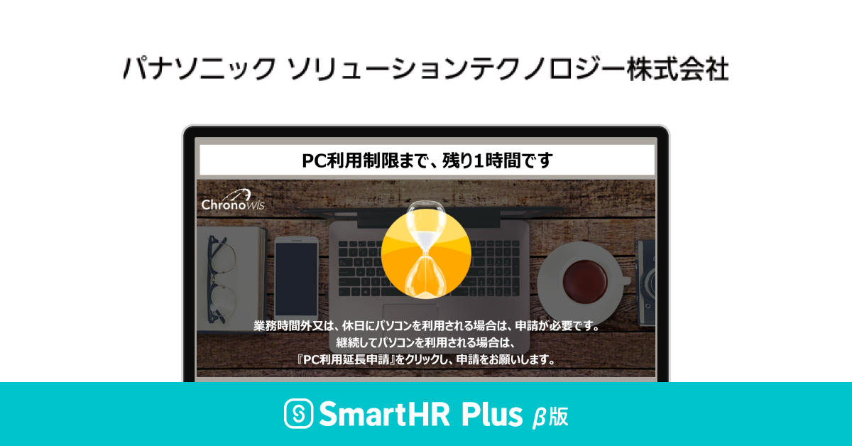 株式会社SmartHR(本社:東京都港区、代表取締役CEO:芹澤 雅人)が運営する、クラウド人事労務ソフト「SmartHR(スマートエイチアール)」はパナソニック ソリューションテクノロジー株式会社(本社:東京都港区、代表取締役社長:香田 敏行)が提供する長時間労働抑止システム「Chronowis(クロノウィズ)」と2023年2月21日よりシステム連携し、協業を開始しました。