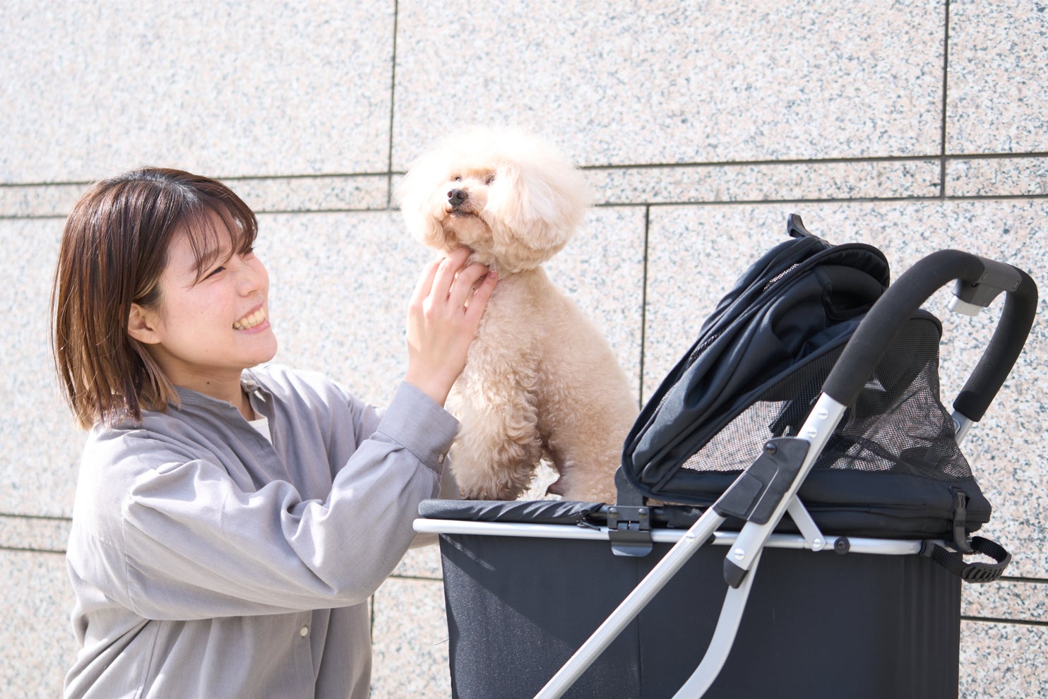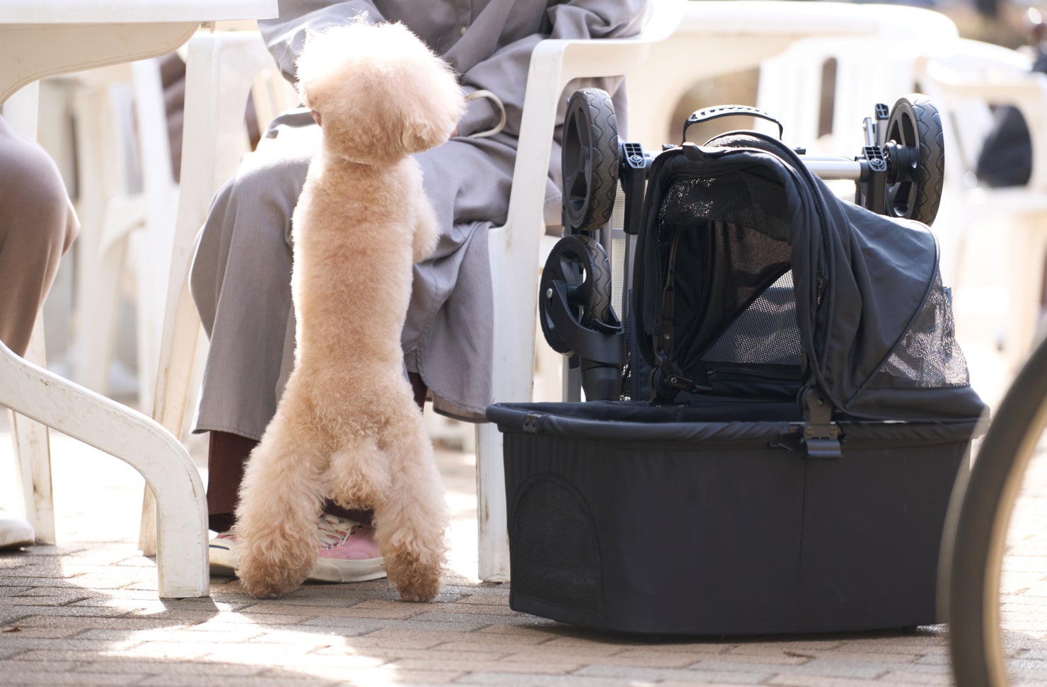 - 【ワンタッチでカンタン折りたたみ】お出かけ先でも置き場に困らない、コンパクトなペットカート