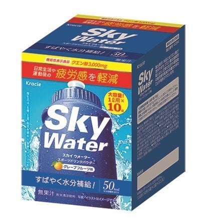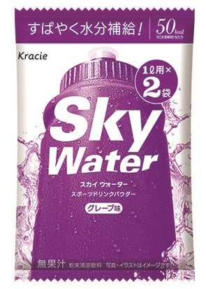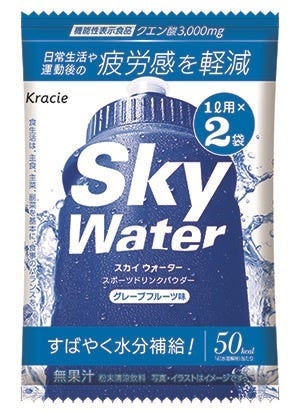 クラシエフーズ株式会社は、糖類控えめのスポーツドリンクパウダー「スカイウォーター(グレープフルーツ味/グレープ味/ライチ味)」(各2L/10L、ノンプリントプライス)を全国のスーパーマーケット、ドラッグストア、コンビニエンスストアなどで3月7日からリニューアル発売します。