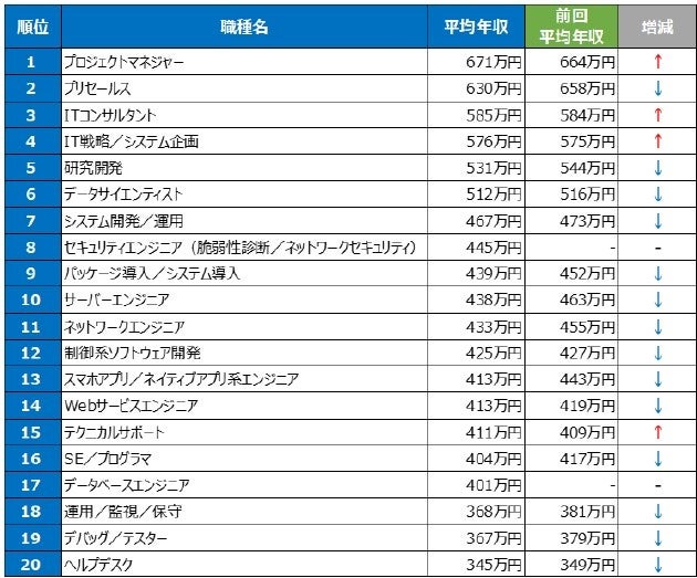 転職サービス「doda」、「IT職種の平均年収ランキング2021」を公開 IT職種の平均年収は438万円。昨年から14万円減