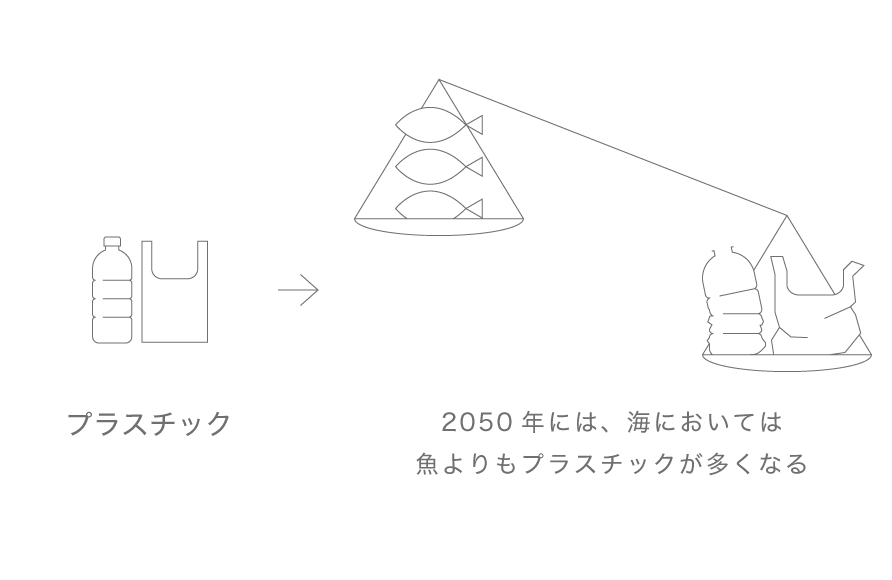 年間約800万トン、累計約1.5億トンのプラスチックが海に流出しています。その結果、2050年には海においては魚よりもプラスチックが多くなると予測されています。※1