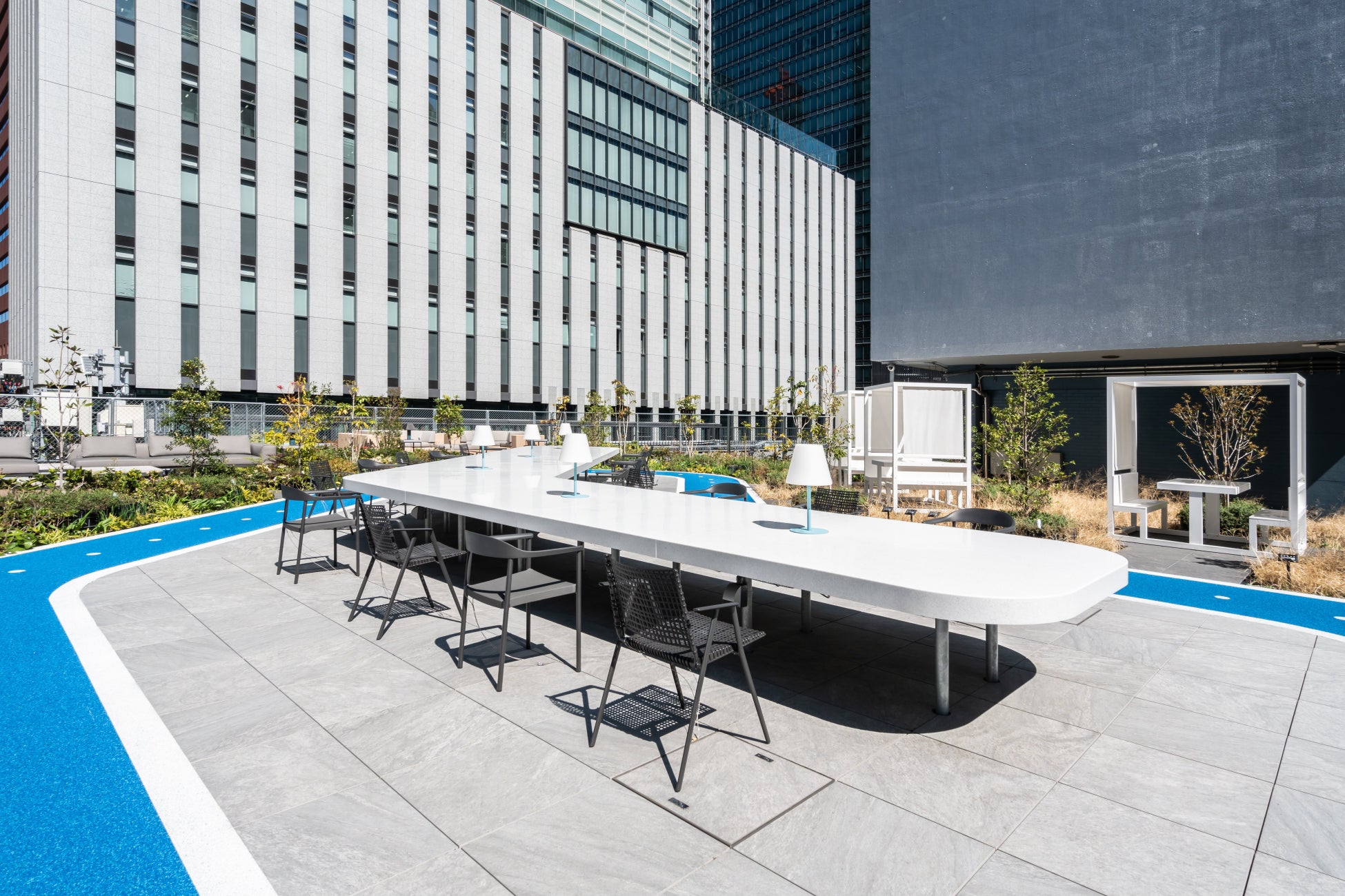晴天時にはセラミックタイルの低い吸水率がメリットとなり汚れが付きにくく、雨天時でもそのデメリットが解消され、天候や作業者の有無に影響されず、安全で美装性を保つ床材を実現しました。