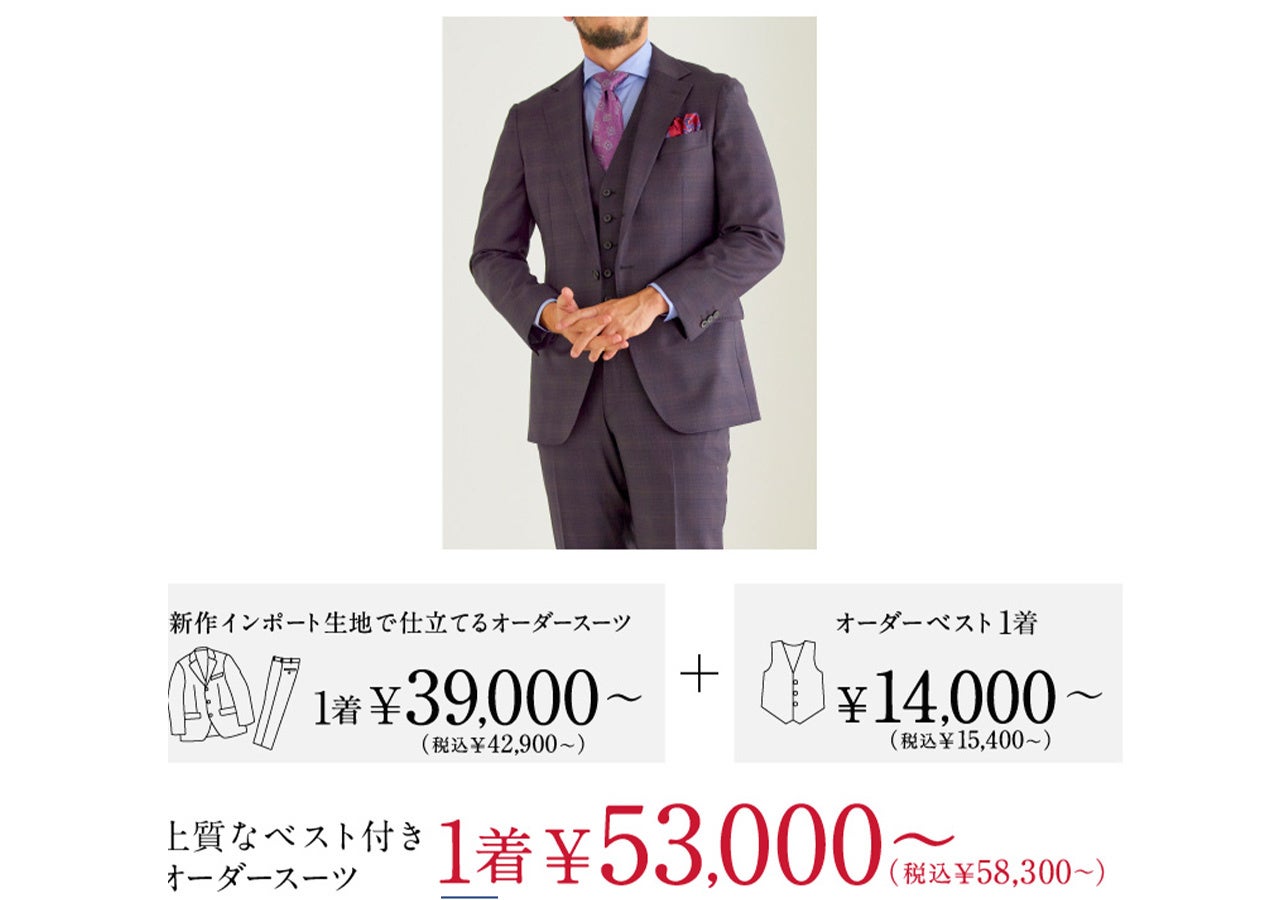 グローバルスタイルが人気のベスト付きスーツをお得に楽しめる「スリーピーススーツオーダーフェア」をリニューアル。今だけコンビプランで5,000円分のクーポン付き!