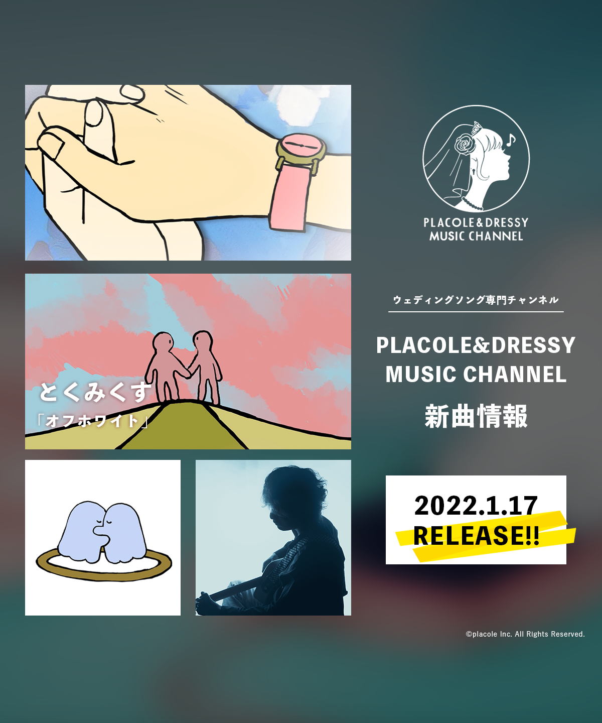 1月はチャンネル登録数22万超え、とくみくすとコラボ!ウェディングソング専門チャンネル「PLACOLE&DRESSY MUSIC CHANNEL」が新曲を発表!