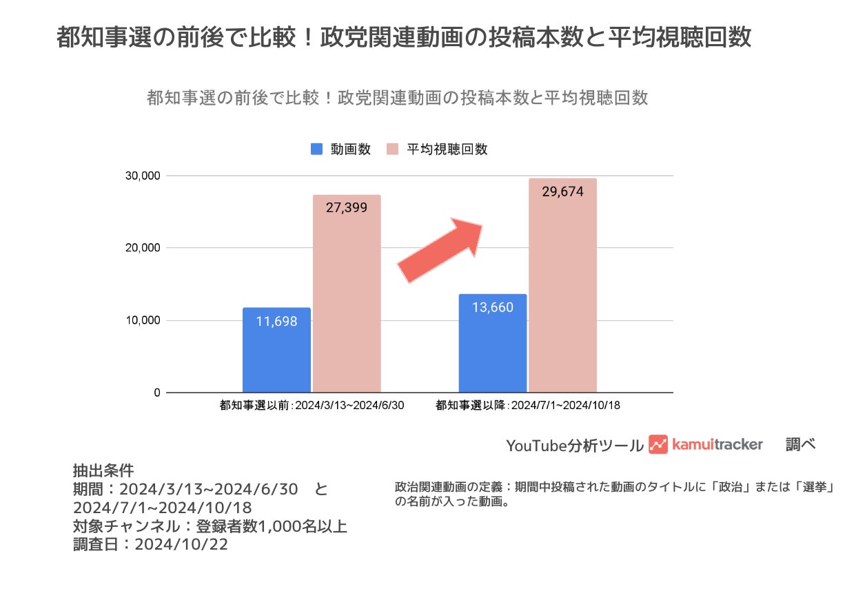 平均視聴回数は都知事選以降で約2,300視聴増えており、約108%増加傾向でした。