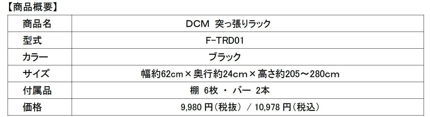 スペースを有効活用し設置することができる「DCM突っ張りラック 」リニューアル発売!