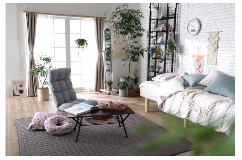 おうち時間が増えているなか、お部屋の限られたスペースを活用して、生活用品を収納したり、雑貨や観葉植物をディスプレイし、お部屋の中をスッキリとお洒落に見せることができる収納家具が人気となっています。DCMで2021年春に販売した「DCM 突っ張りラック」は、2本の脚を天井と床に突っ張って固定し、スペースを有効活用して収納できるラックとしてご好評をいただきました。従来の商品は脚が2本のため、付属の棚板は小さく、収納量が限られています。そこで今回、4本の脚で突っ張ることにより安定した状態で固定ができ、ラックの奥行きも長く、収納力を向上させてリニューアル発売いたします。