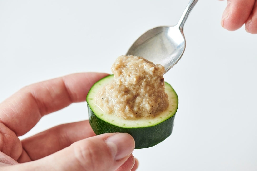 鯖をベースにムースのように仕上げたバーニャカウダ。口当たりがやさしく、にんにく、しょっつる、アンチョビなど、和・洋の素材がふわりと香ります。生のズッキーニや茹でた里いもなど、優しい風味の野菜にもよく合います。温かいソースの意の「バーニャカウダ」ですが、「鯖バーニャカウダ」は、温めても冷やしても、ディップやソースとしてお楽しみいただけます。