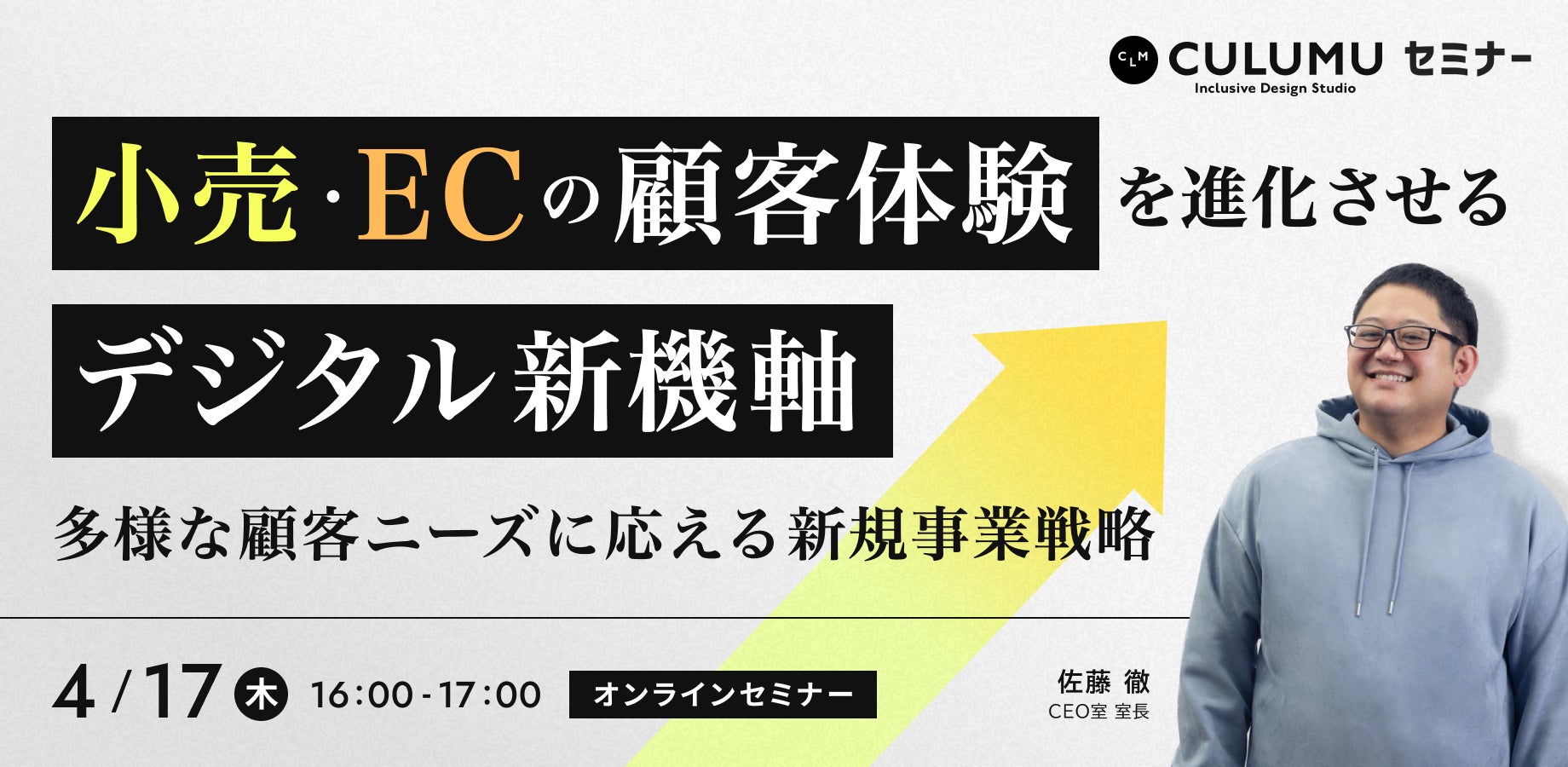 本セミナーでは、視覚・聴覚・移動力に配慮したデジタル最適化、LGBTQ+・外国人市場へのパーソナライズ戦略、フィジカルとデジタルの融合による次世代UX設計など、売上とブランド価値を高める最新アプローチをご紹介します。インクルーシブな発想で未開拓市場を切り拓くヒントが得られる、小売・EC事業者必見のセミナーです。