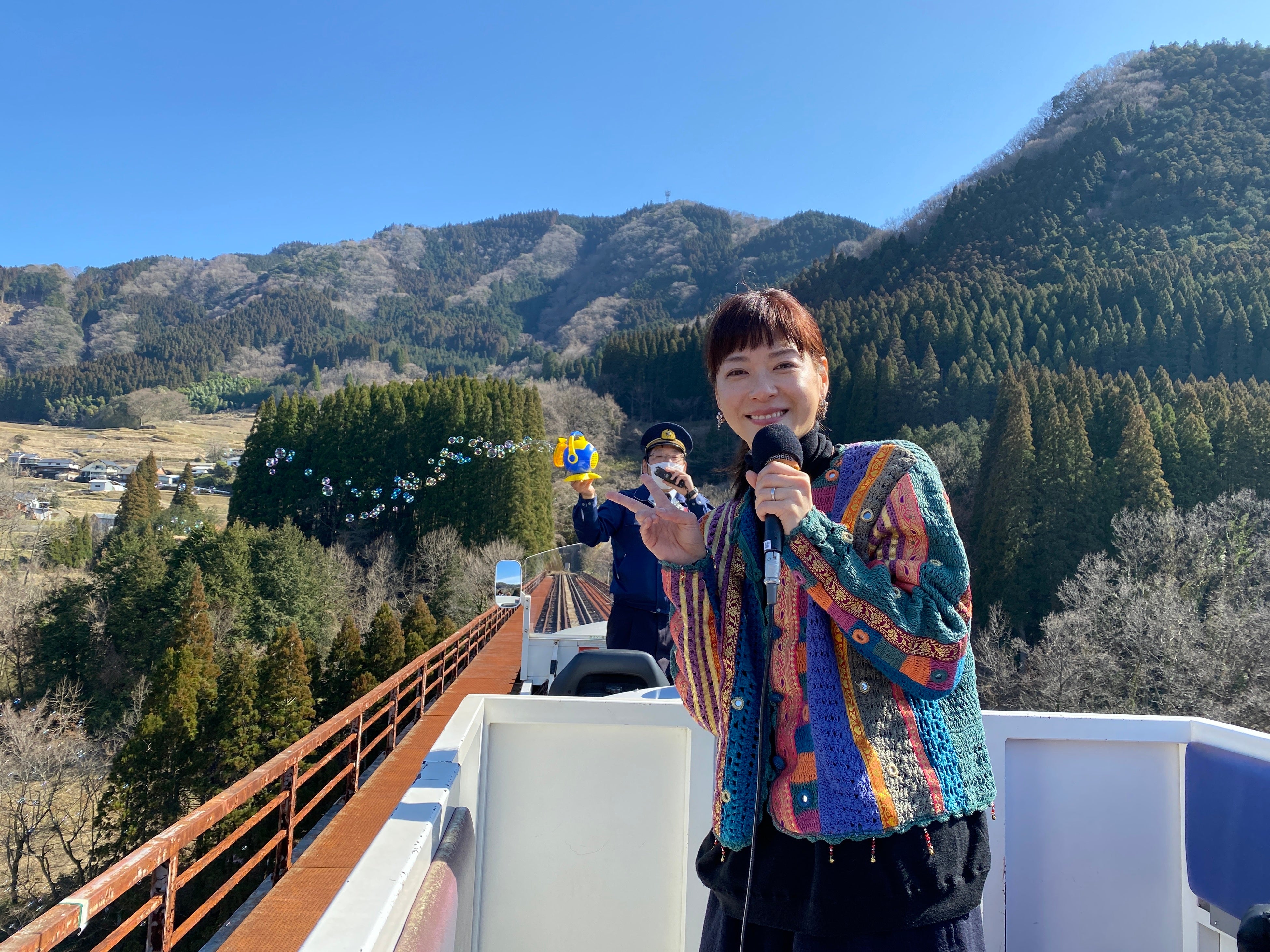 公開録音前日には、パワースポットとして名高い高千穂に立ち寄り名所を堪能。ボートでの高千穂峡めぐり、高千穂神社、芸能の神社:荒立神社。そして、廃線となった線路を活用している高千穂あまてらす鉄道では、生まれて初めての気動車(ディーゼル車両)の運転も。高千穂産のおそばにも舌鼓をうち、公開録音前に宮崎を目一杯楽しみました。