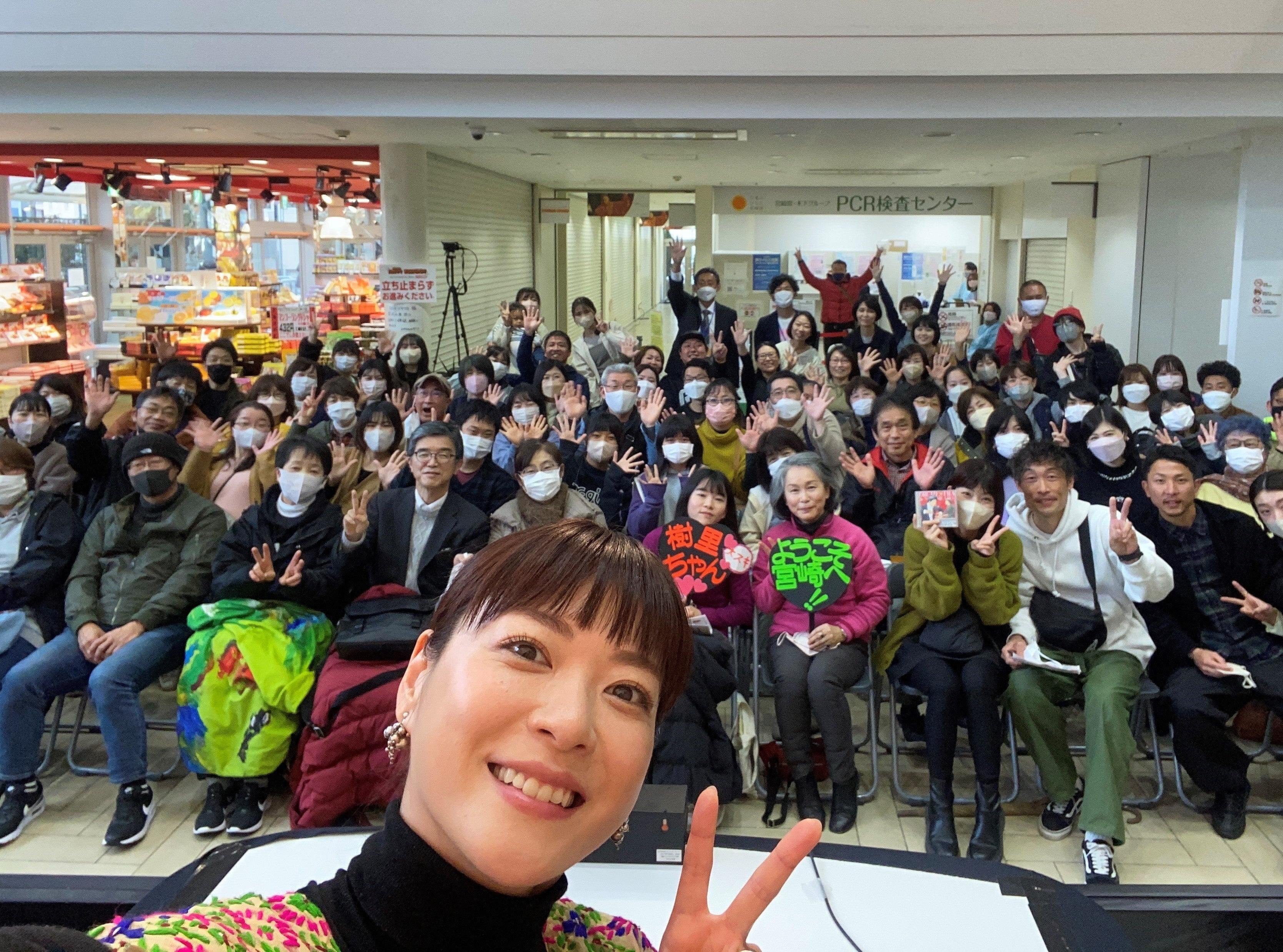 翌日、宮崎駅西口のKITENビルで行われた公開録音本番には、観覧チケットに当選された75組150名が来場。盛大な拍手に迎えられた上野樹里は、「え~、拍手の練習とかを予定してたのに~。もうみんなバッチリじゃない!」とちょっと予定が狂いつつも満面の笑顔。宮崎でモノづくりに頑張る女性たちとのインタビューや、来場者からの質問にテンポよく答えていきました。「ラジオやっていて良かったことは?」という質問には、「今日がMAX!いつもはラジオブース。メールとかを紹介しながら徐々にお近づきになれたかな・・・と思っていたけど、ついにみんなに会えた!!ラジオやっていて良かった!」と喜びを伝えていました。