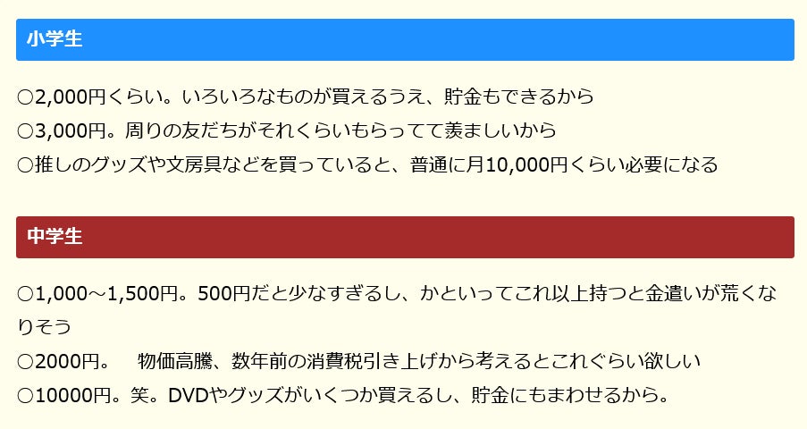 - 理想のおこづかい金額は? 理由があれば一緒に教えてね