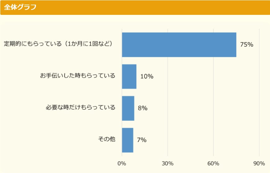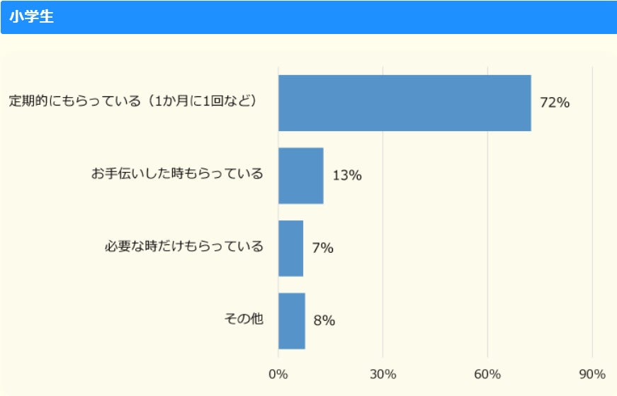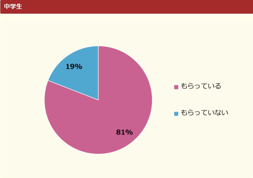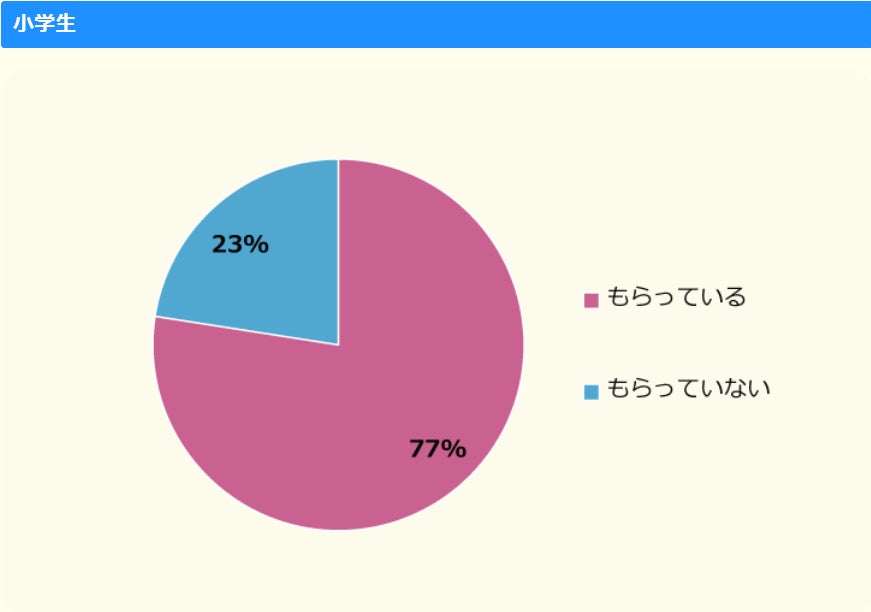 おこづかいをもらっている小中学生は79%で、ほとんどの子どもたちがおこづかいをもらっていることが分かりました。