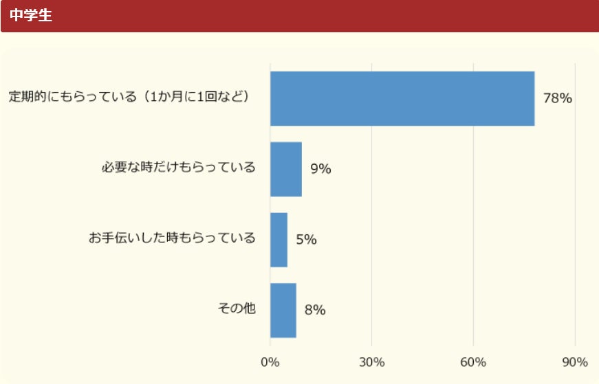 中学生の回答は2位と3位が入れ替わり、「必要な時だけもらっている」が9%で、「お手伝いした時にもらっている」が5%という結果になりました。