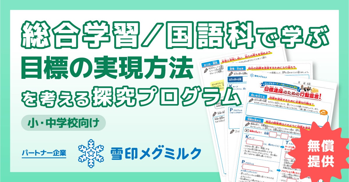 今回はその第六弾として、雪印メグミルク株式会社と連携した「総合学習/国語科で学ぶ目標の実現方法を考える探究学習プログラム」を提供いたします。