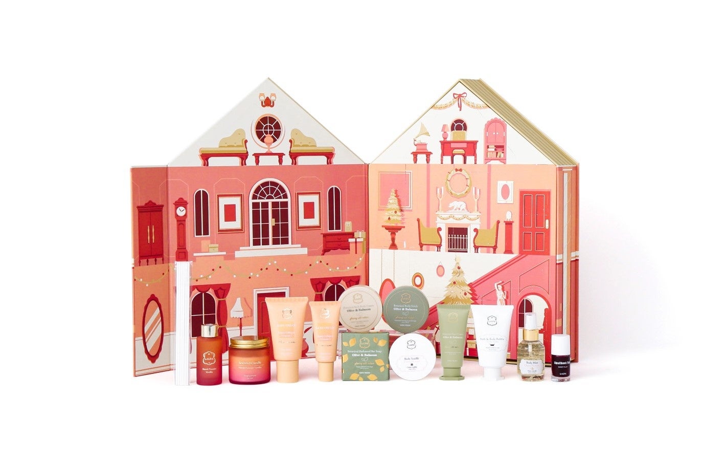ドールハウスをイメージした特別BOXに、ラリンのベストセラー商品である「オリーブ&ババス ボディクリーム」や、日本未発売の製品など12点の豪華ラインナップ。ボディケアコスメから、キャンドルやディフューザーまで、ホリデーシーズンを華やかに彩ります。