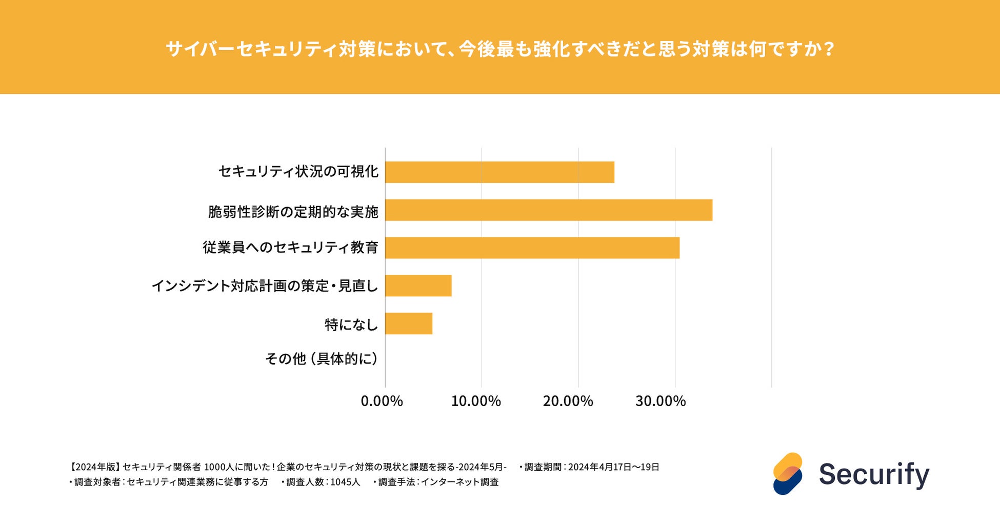 最も強化すべき対策として挙げられたのは「脆弱性診断の定期的な実施」、次いで 「従業員へのセキュリティ教育」 、「セキュリティ状況の可視化」