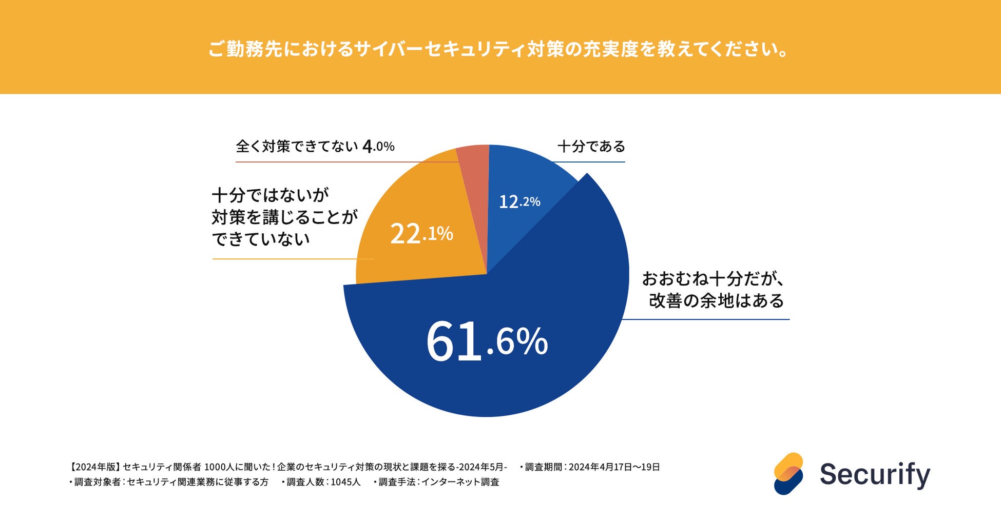 手軽に社内でセキュリティ診断を実施できる自動脆弱性診断ツール「Securify(セキュリファイ)」を提供する株式会社スリーシェイク(本社:東京都新宿区、代表取締役社長:吉田 拓真、以下スリーシェイク)は、1045名のセキュリティ関連業務に従事する方を対象に、「企業のセキュリティ対策の現状と課題」についてアンケート調査を行いました。