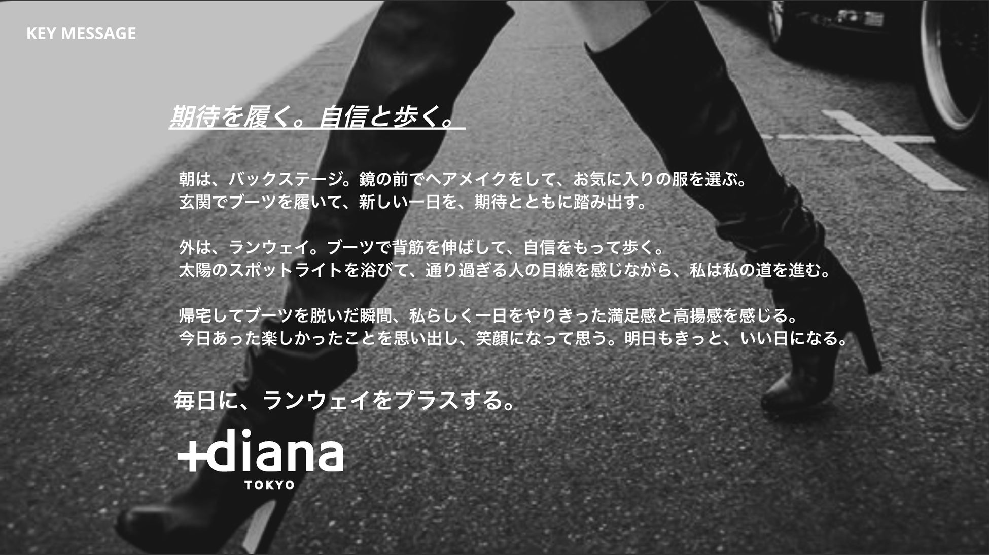 これからも「ダイアナ」という素晴らしいブランドのクリエイティブパートナーとして長期的にサポートさせていただけるよう日々努力を続けて参ります。