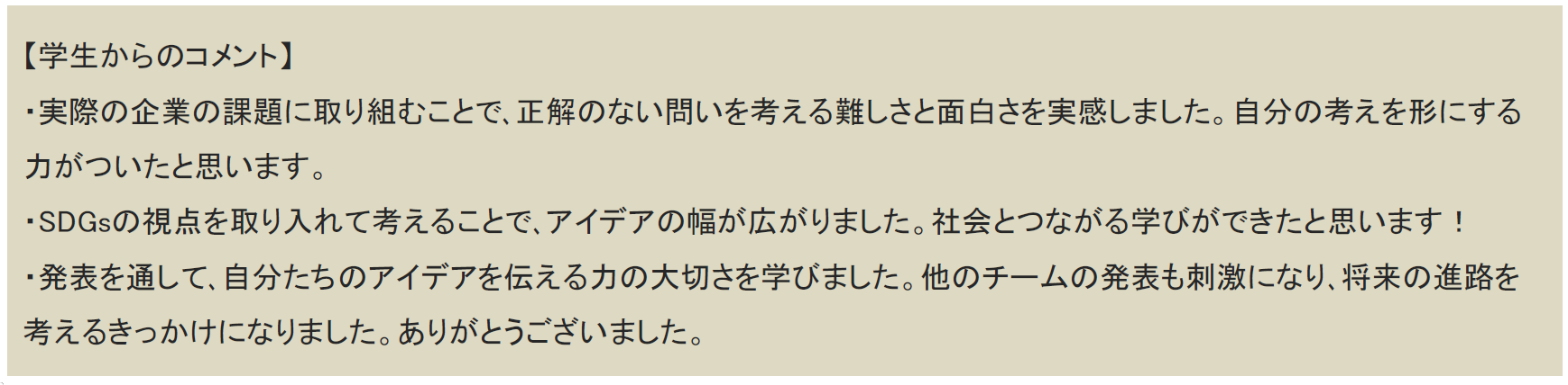 【プログラム】企業のリアルな課題に挑むというテーマのもと、企業からのミッションにチャレンジする探究学習