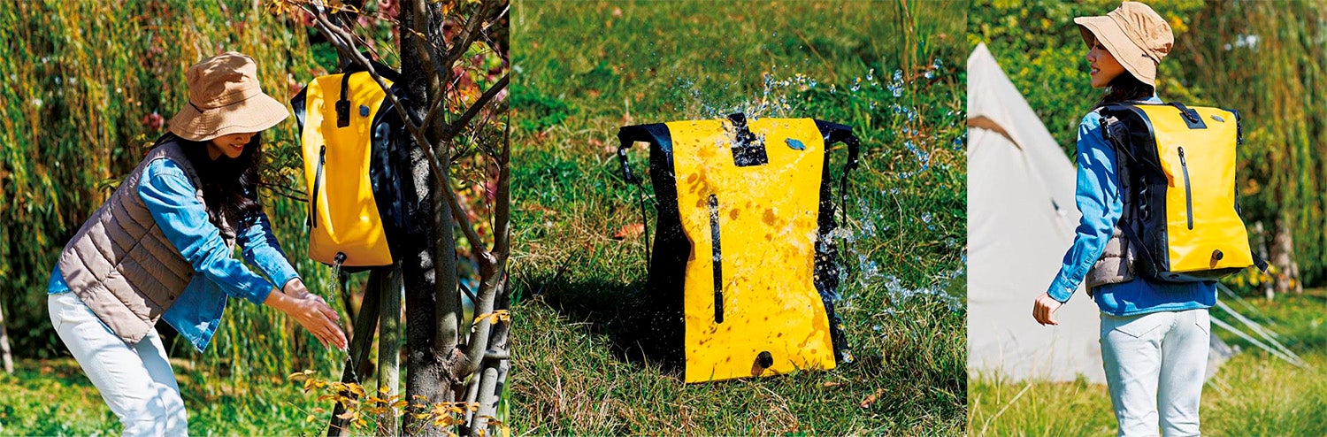 水や空気を入れられる!アウトドアや防災対策に。「水から荷物を守るウォーターガードリュック」を3月28日より発売
