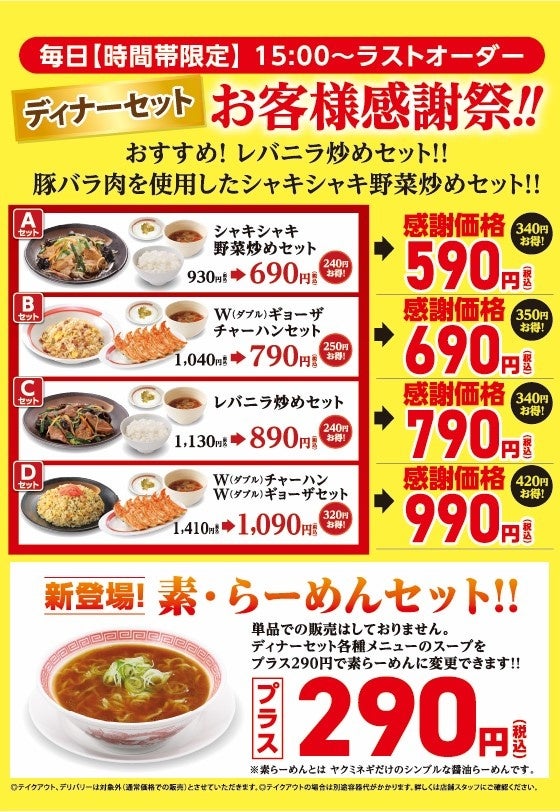 ディナーセット対象店舗 : 一部店舗を除く幸楽苑 郊外店