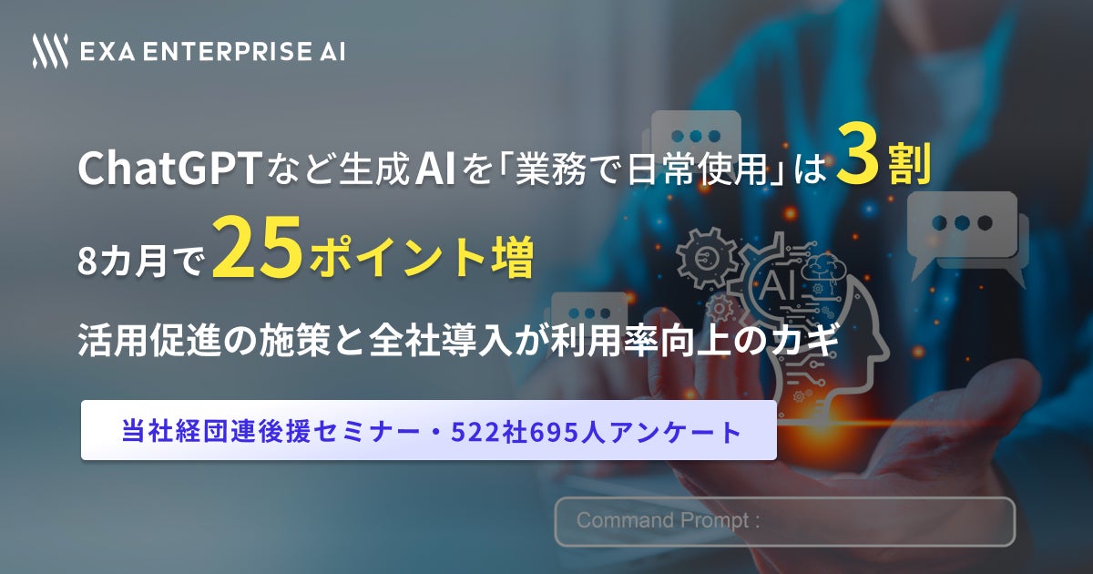 ChatGPTなど生成AIを「業務で日常使用」は3割 、8カ月で約25ポイント増、活用促進の施策と全社導入が利用率向上のカギ