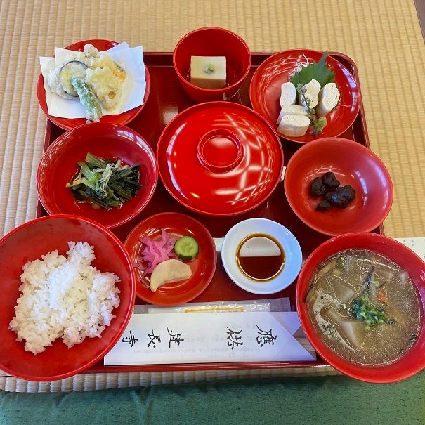 希望者には「精進料理」もお楽しみいただきました(事前申し込み)。僧侶の皆さんが丁寧に準備をしており、温もりを感じる品々です。もちろん名物のけんちん汁もふるまわれました。