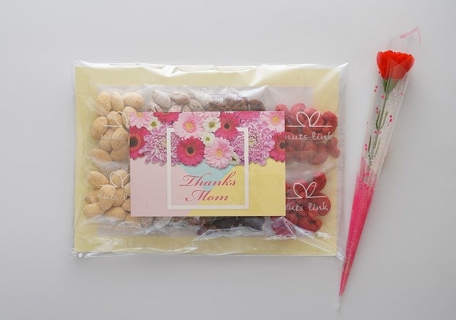 - 【母の日ギフトセット】 フレーバーナッツ4種8袋 詰め合わせ カーネーション(造花) メッセージカード付