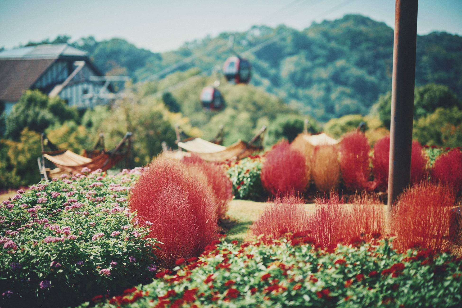 神戸のコキアの名所”神戸布引ハーブ園”。コキアが間もなく見ごろです。赤一色に染まるガーデンのコキア、神戸の街並みに溶け込むコキア、秋の花々と一緒に咲き集うコキア、3つのロケーションで楽しめます。