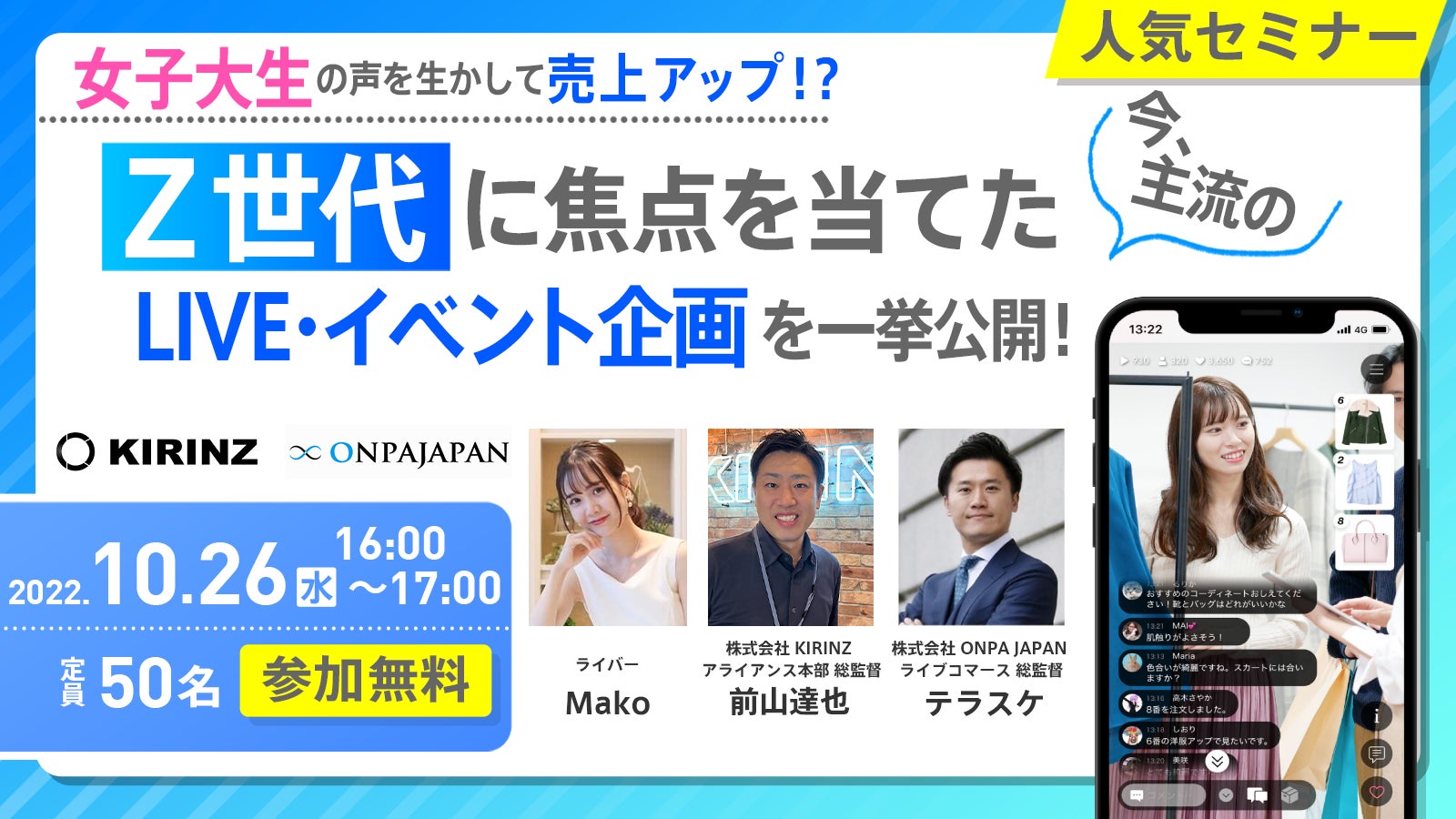 今回は【女子大生のマーケティング会社】として創業し、現在はライバーマネジメントも展開する株式会社KIRINZ様をゲストにお招きし、企業様とライバーのコラボ配信で成果を上げている施策についてお送りさせていただきました。ライブ配信を活用した企業様のマーケティング活動がより成果を上げるために、お役に立つ情報をお届けします!
