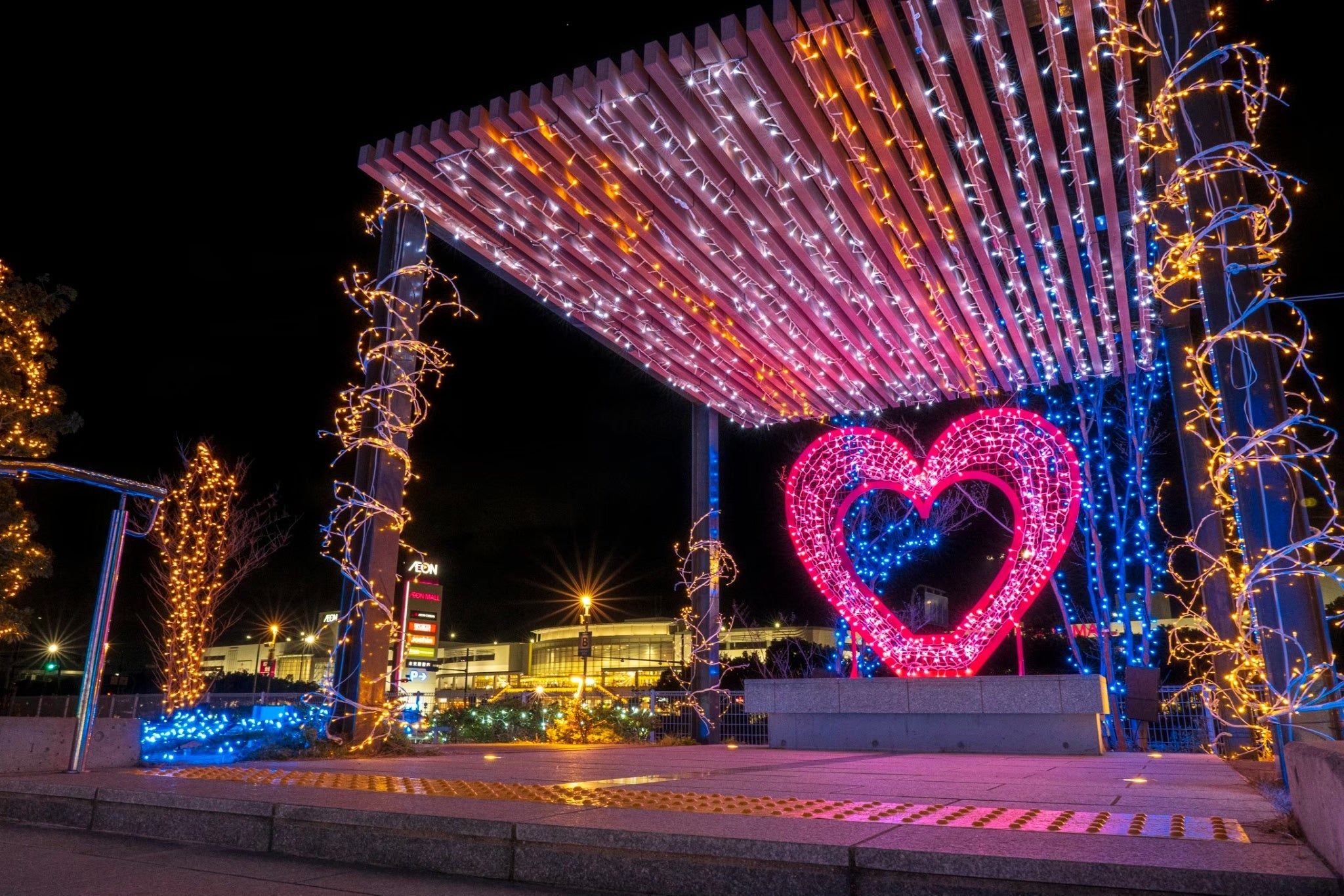 冬の風物詩として今年で4年目を迎える本企画は、公園内のコミュニティエリアに総数6万球のLEDライトを散りばめ、冬にしか見ることのできない煌めく光の公園を演出します。寒さを感じさせない、温かな光と美しい色彩がSENNAN LONG PARKを幻想的な夜の世界へと変えます。高さ約1.8mの大きなハートのモニュメントや、そのほかたくさんのハート型の幻想的なイルミネーションが、恋人の聖地である泉南の海辺を美しく彩ります。家族や友達と光の世界に包まれて特別な時を過ごしてみてはいかがでしょうか?