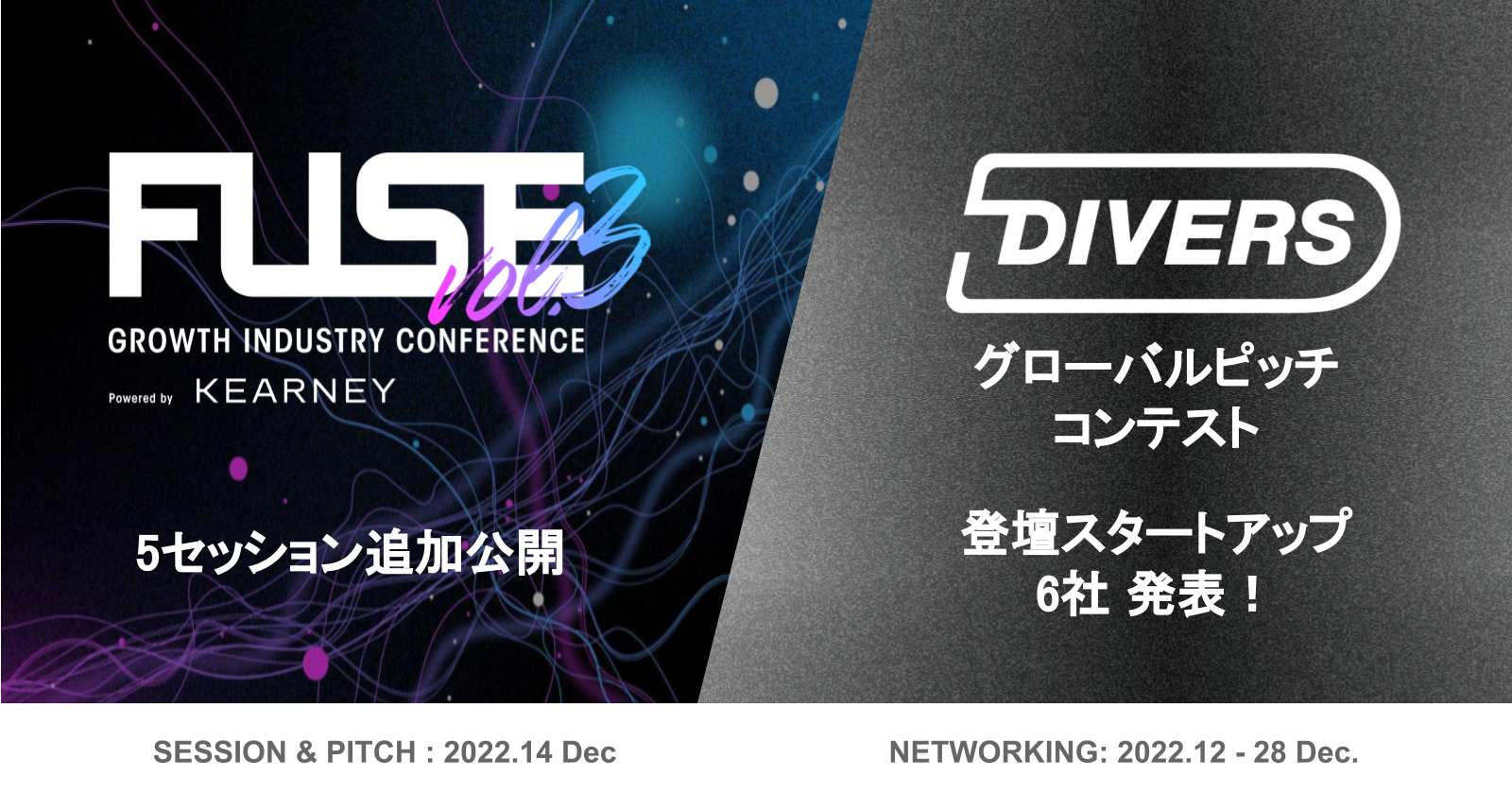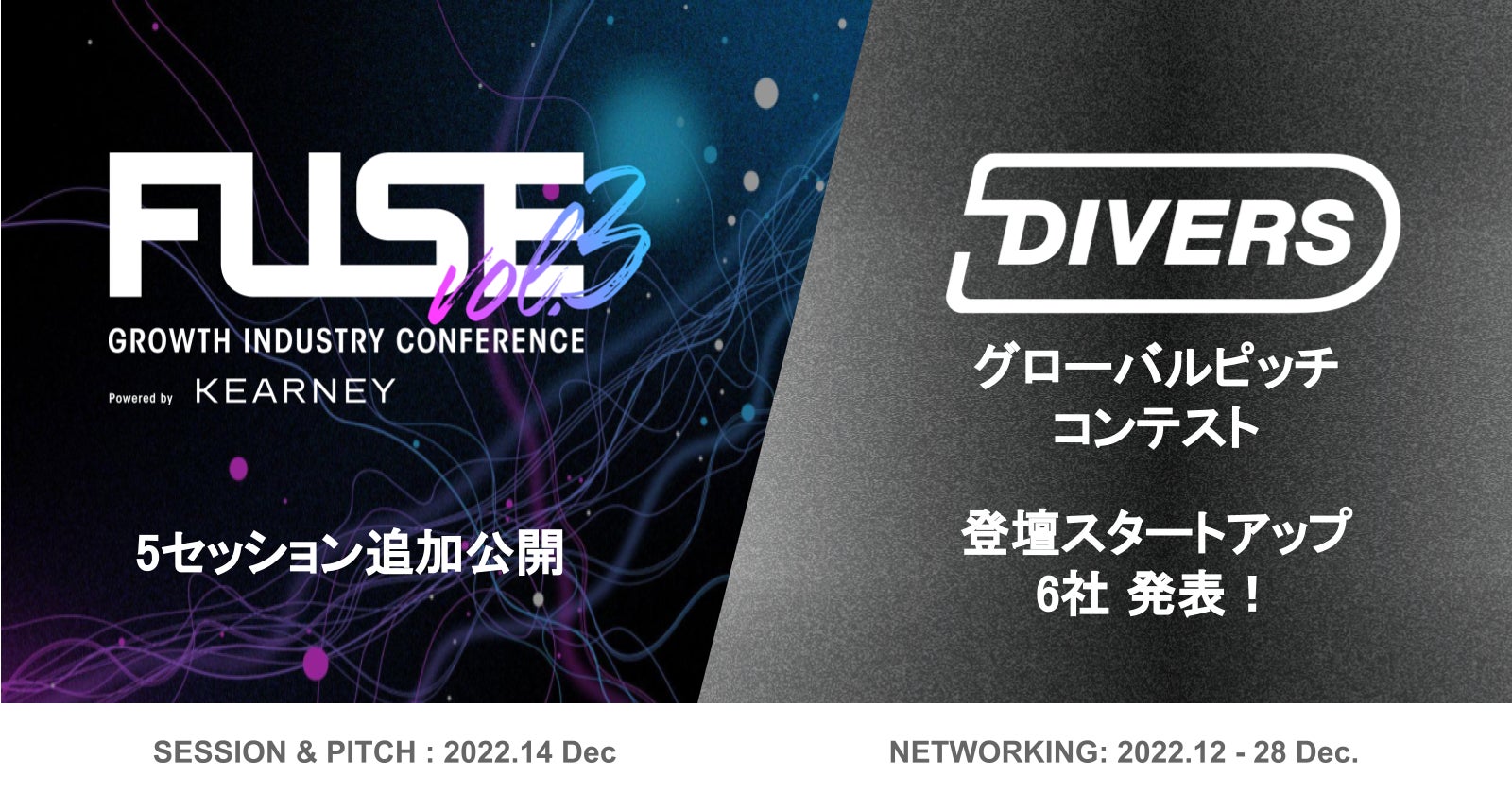 フォースタートアップス、成長産業カンファレンス『FUSE』Vol.3 登録者数1,000名突破!豪華5セッションの情報解禁ピッチコンテスト「DIVERS」参加スタートアップ 6社発表!!