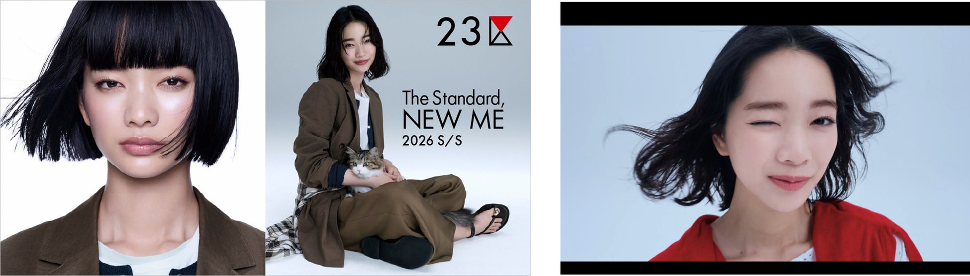 メイキング動画を、2月18日(水)から『23区』公式ブランドサイト及び公式YouTubeで公開します。動画前半は「Cute」スタイルの「愛」、後半は「Cool」スタイルの「AI(アイ)」を演じた撮影の様子を収録。見上さんの雰囲気の変化や、猫と一緒に撮影に臨む無邪気な笑顔は必見です。