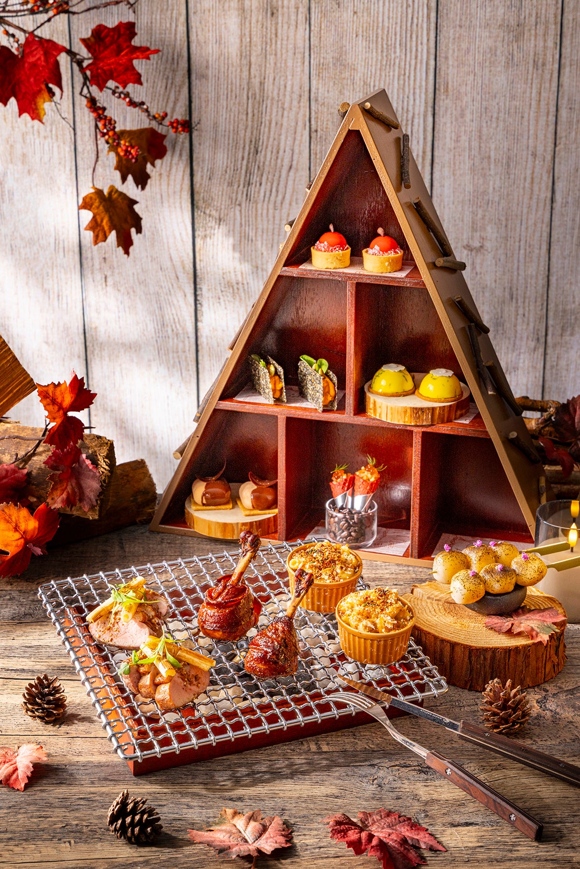 焚き火の香りを纏ったお肉の誘惑。秋の食材に囲まれて楽しむキャンプ着想の非日常アフタヌーン