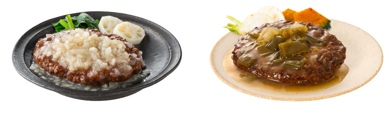 2025年11月1日より発売する『地域と旬』ハンバーグは、千葉県市原市の特産である姉崎だいこんを使用した『千葉 市原市の姉崎だいこんを使ったハンバーグ』と、京の伝統野菜・九条ねぎを使用した『京都の九条ねぎを使ったハンバーグ』2品のパッケージリニューアルを皮切りにハンバーグシリーズのパッケージデザインを一新します。