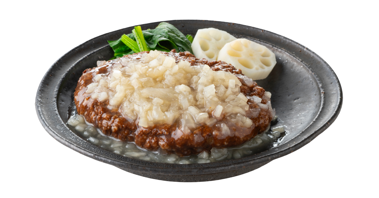 千葉県市原市の特産である姉崎だいこんを使用した、おろしソースハンバーグです。だいこんの甘みと食感