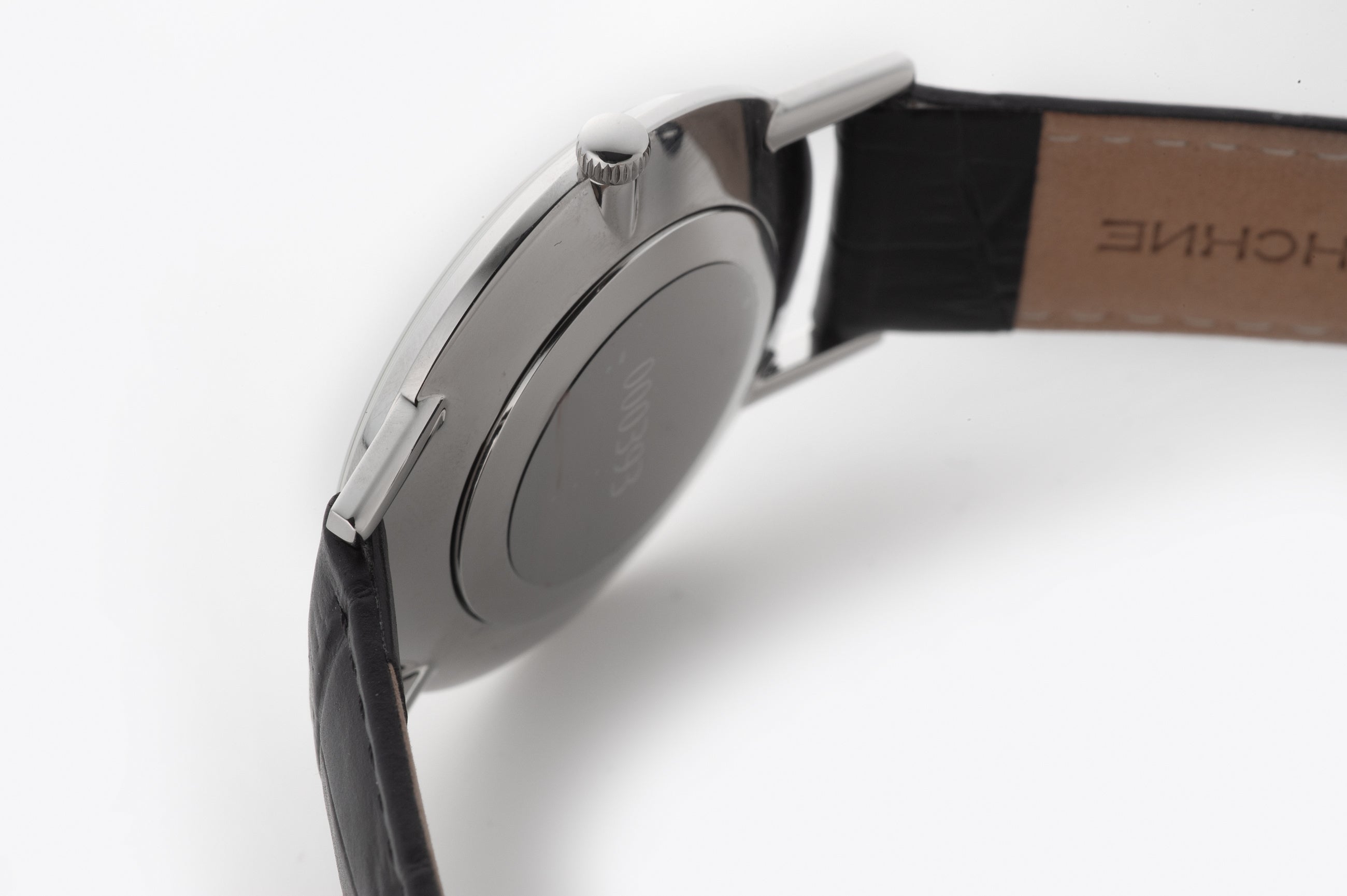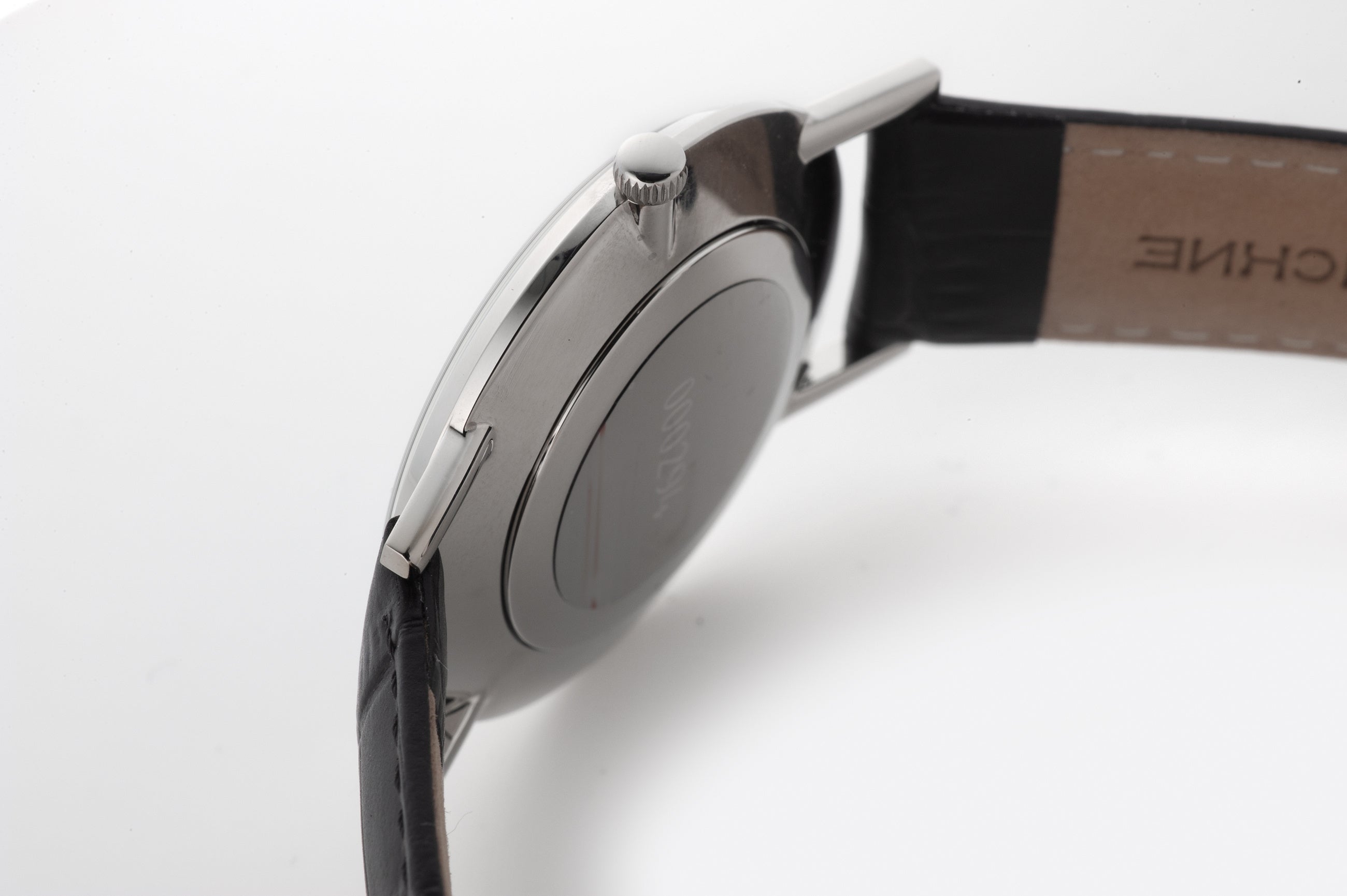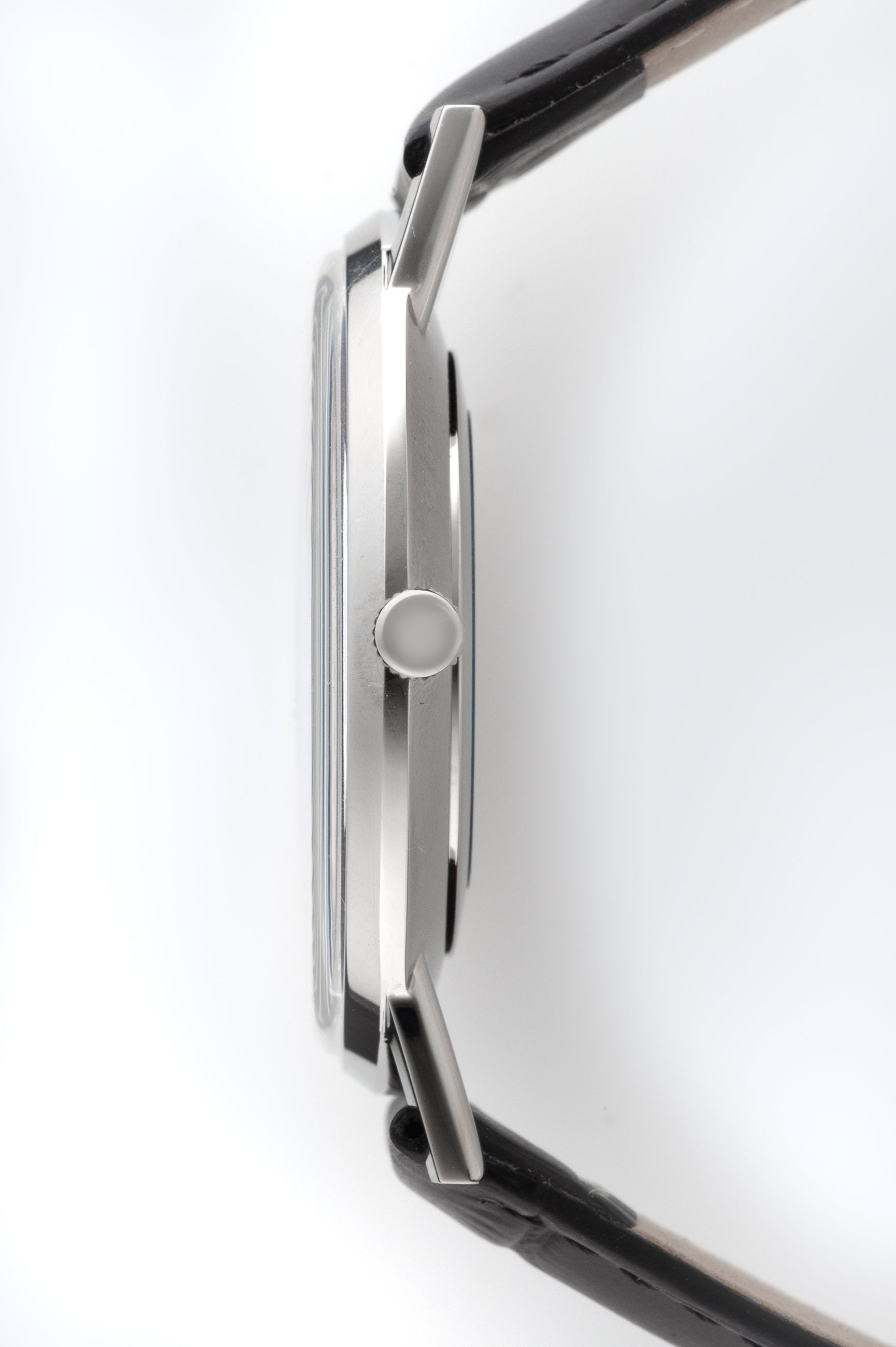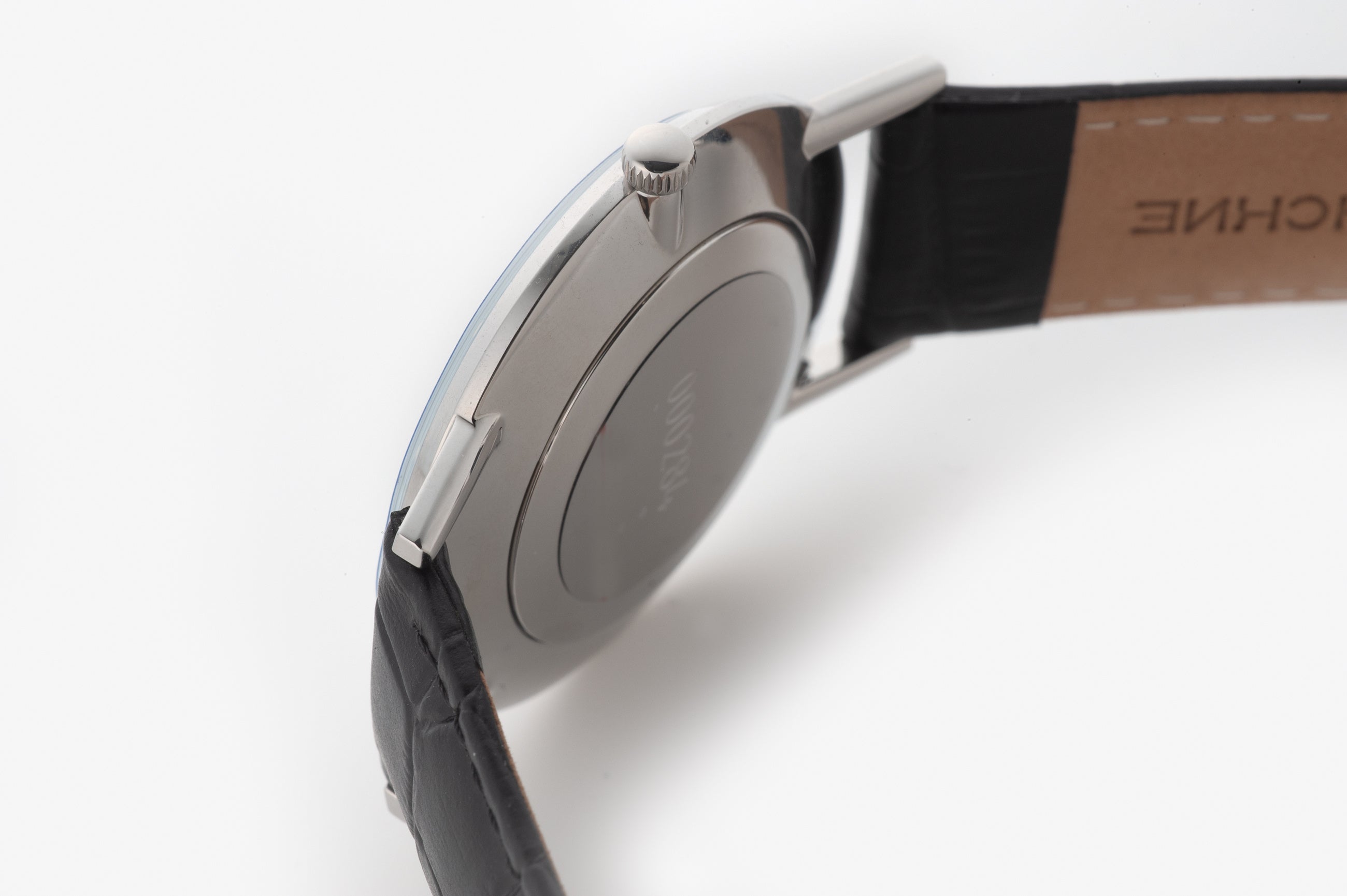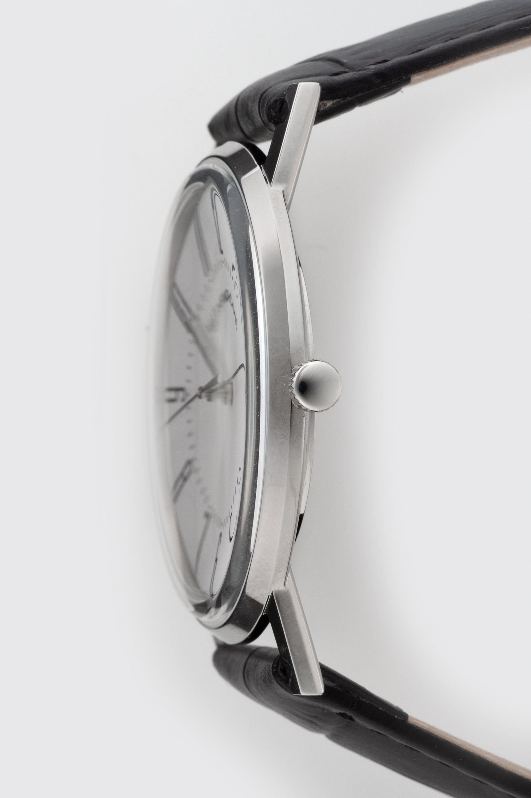 また、腕馴染みの良いブラックレザーストラップは、クラシックなスタンダードクラスプ付きで、洗練された装着感を提供。