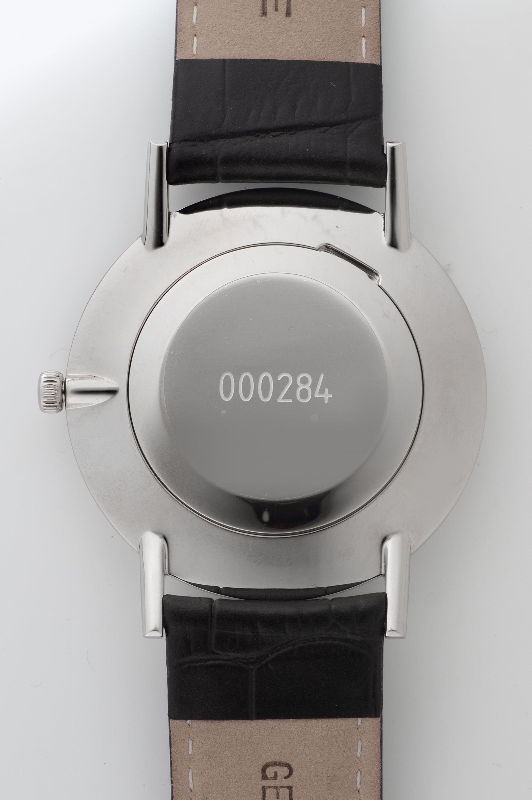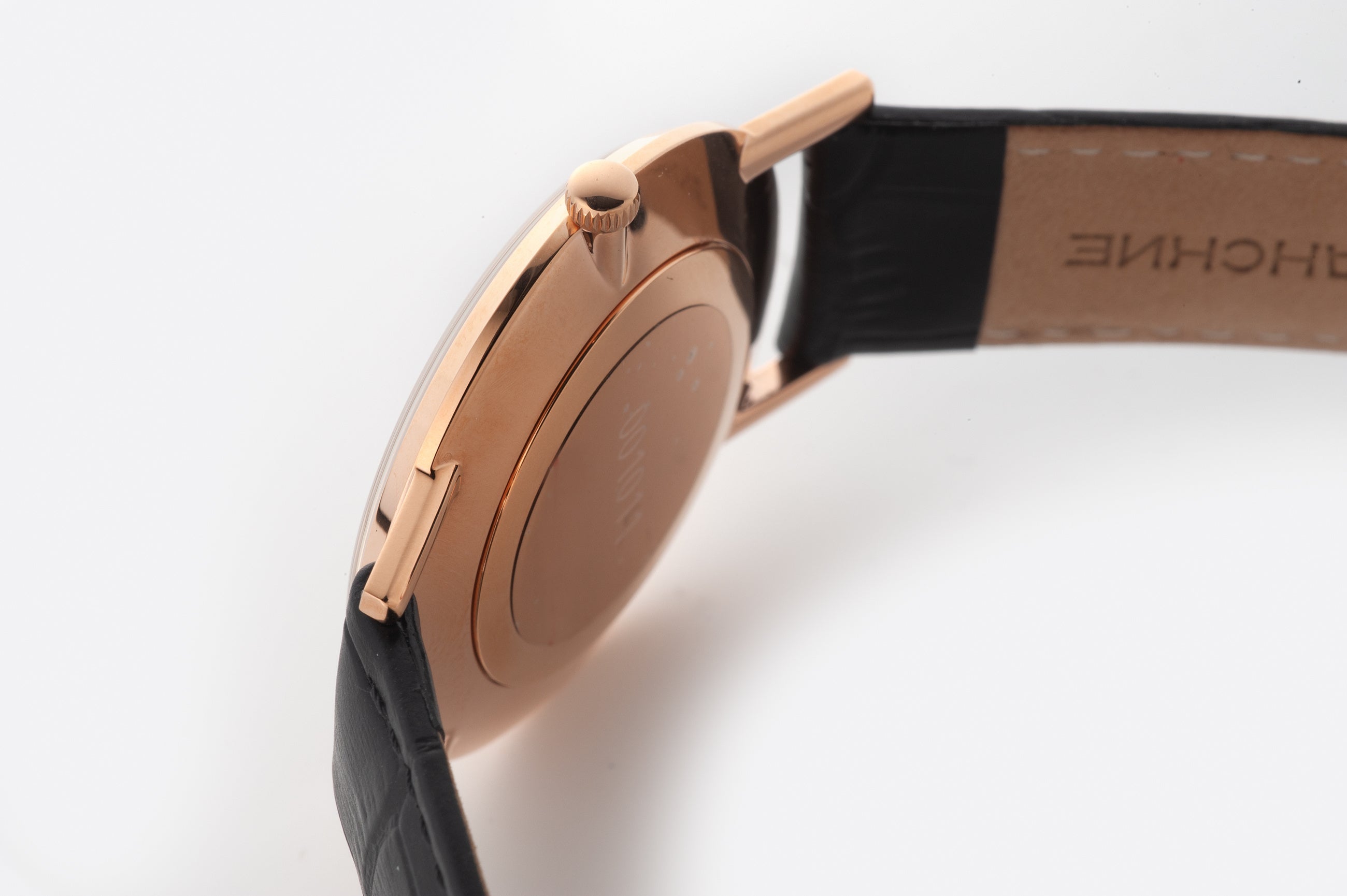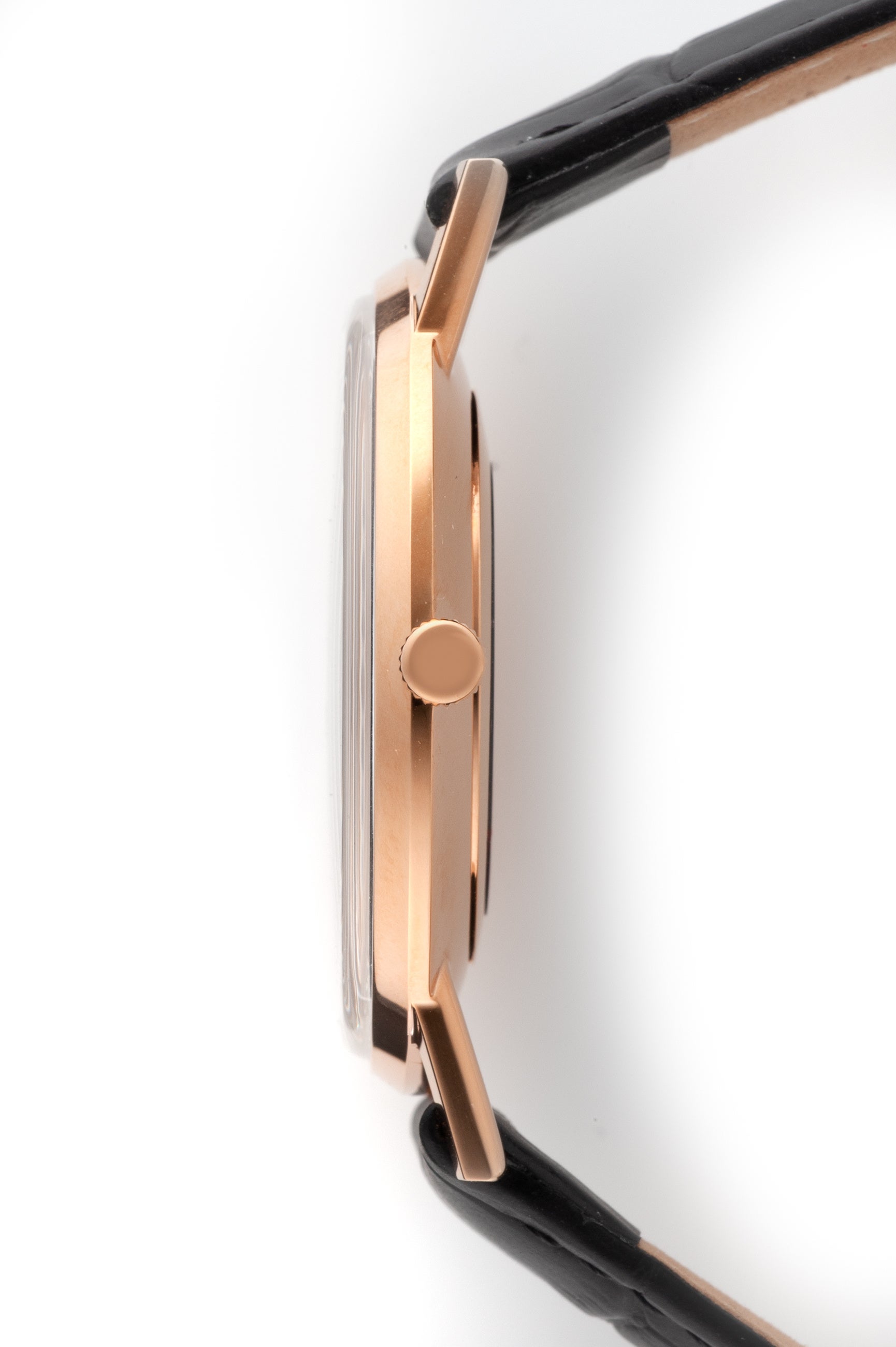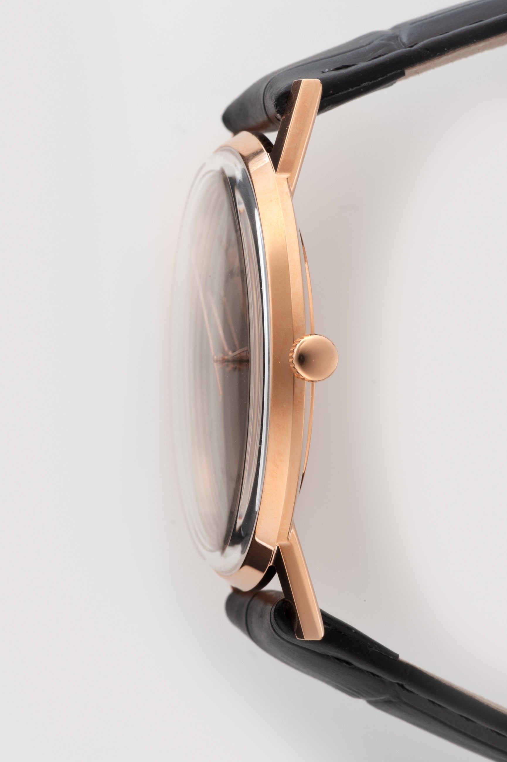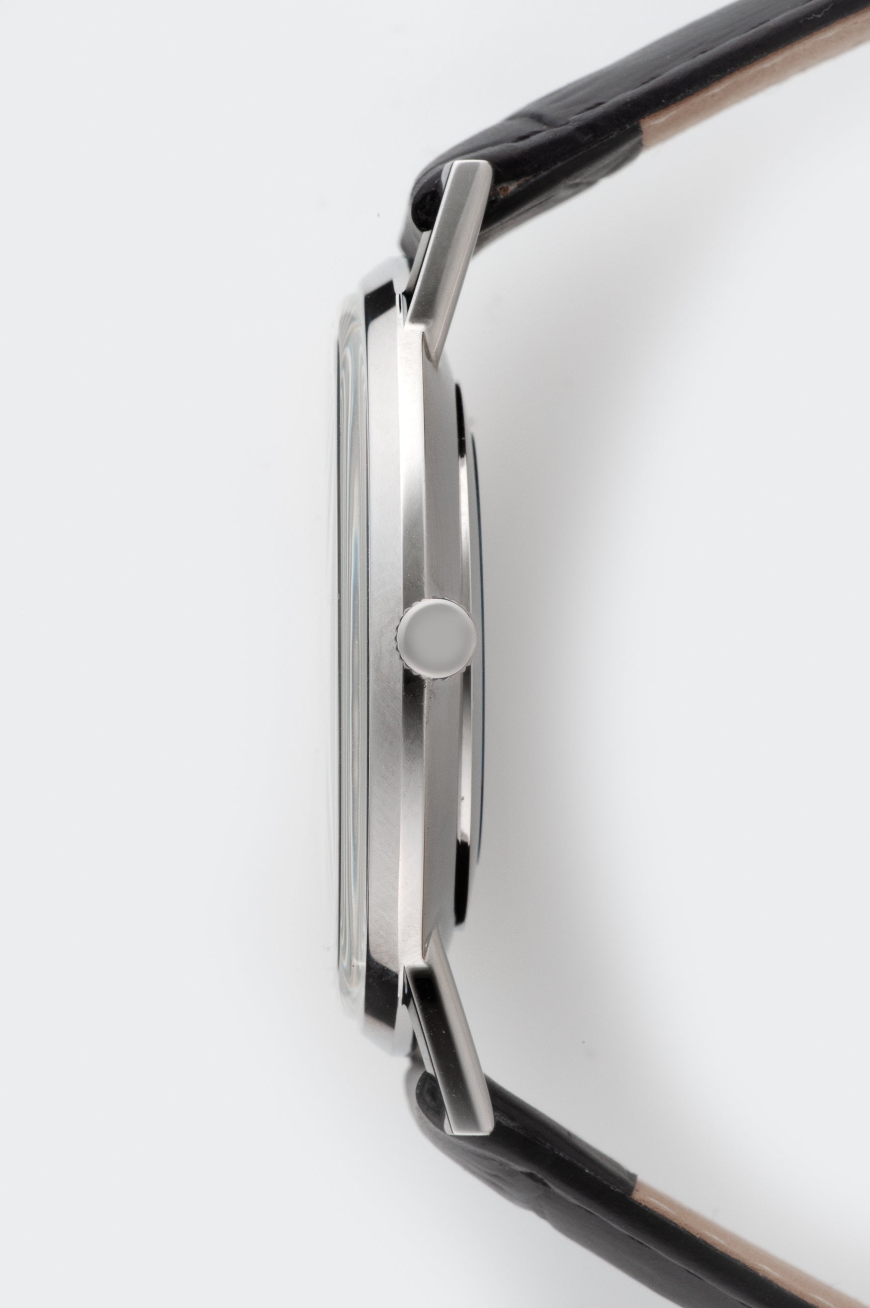 また、腕馴染みの良いブラックレザーストラップは、クラシックなスタンダードクラスプ付きで、洗練された装着感を提供。