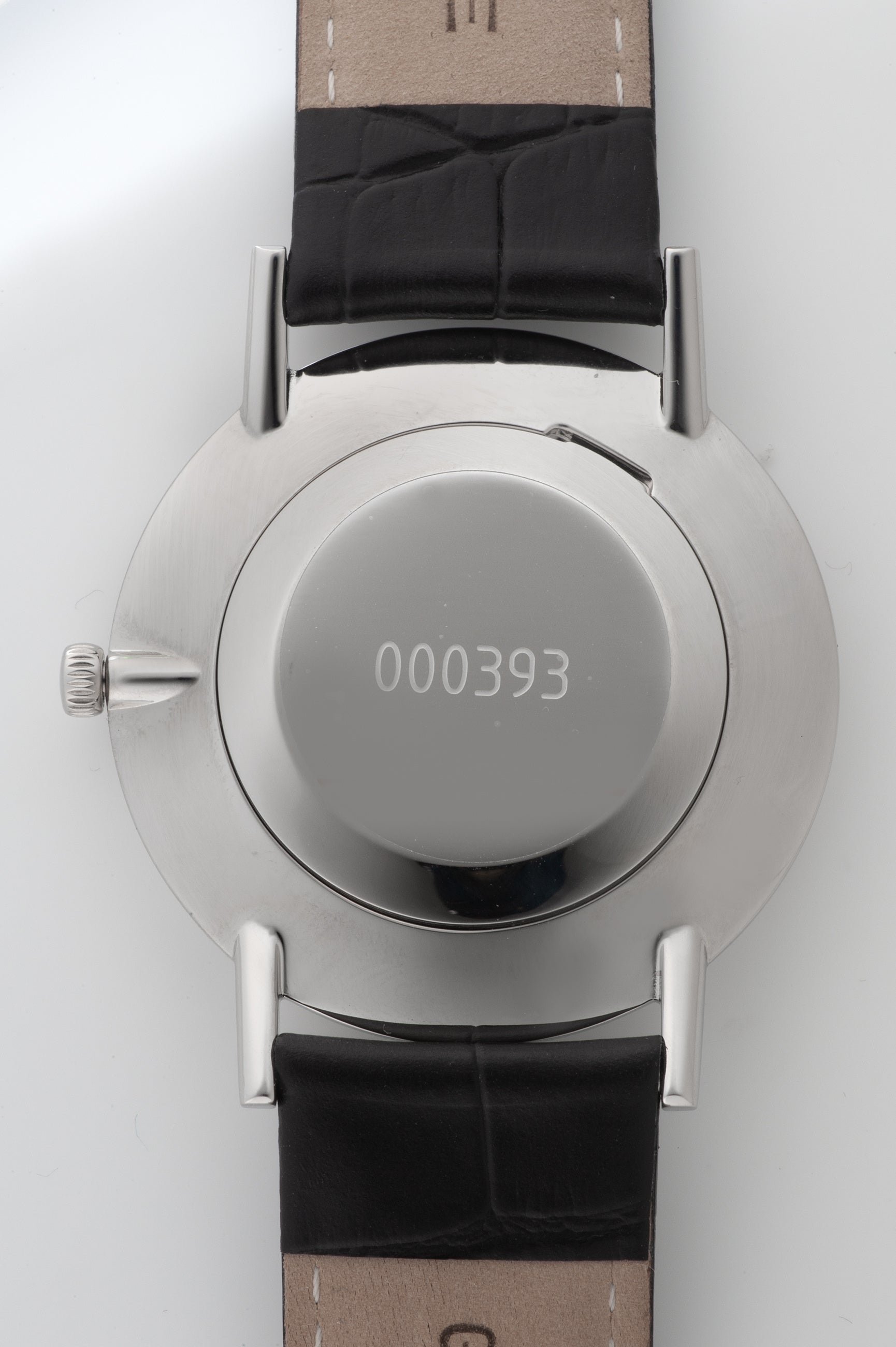 ケースバックはステンレススチール製、ダイヤルはシルバー仕上げで、プリントによるフルインデックス表示が施されていました。