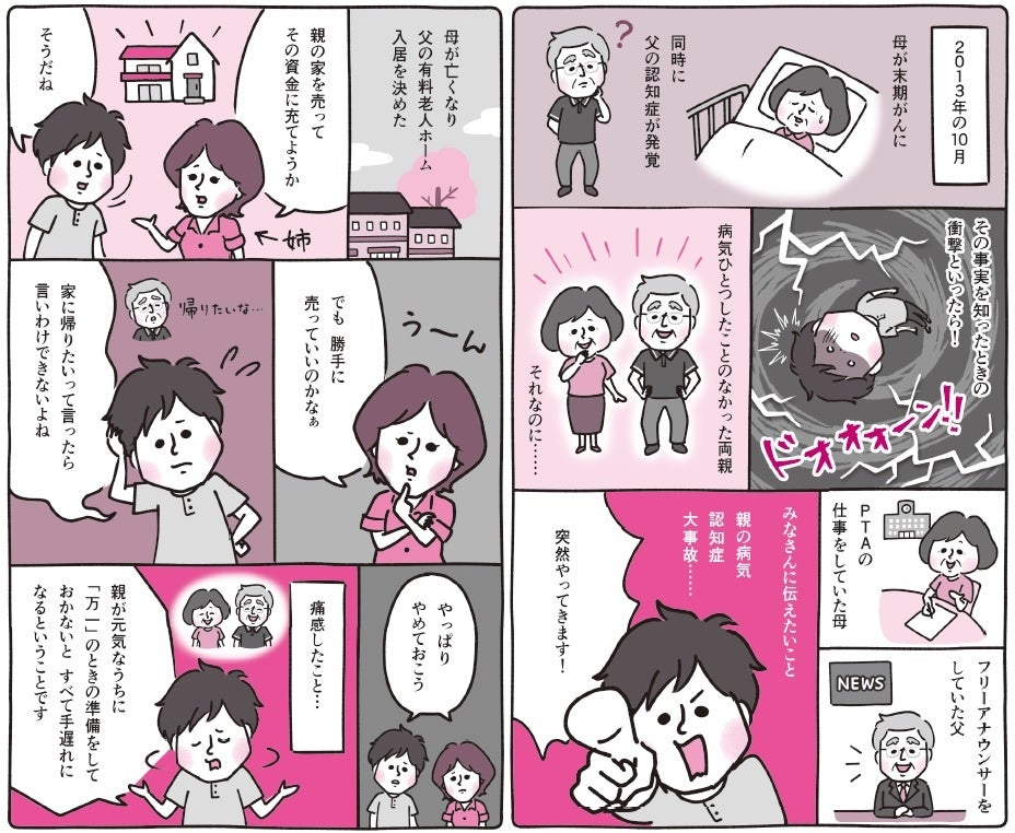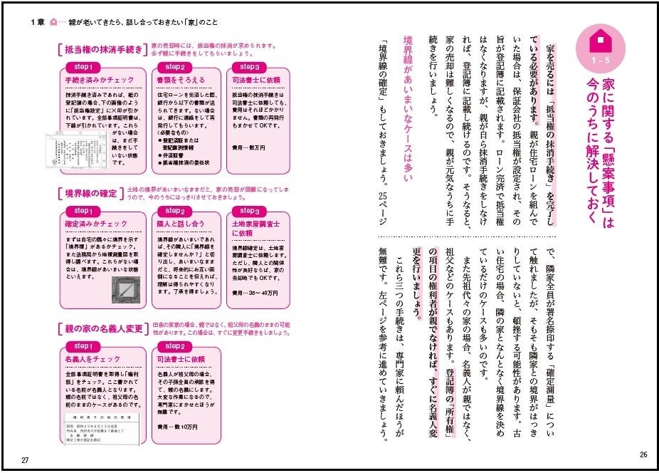 また母親の死や父親の認知症の体験をもとに執筆した『70歳をすぎた親が元気なうちに読んでおく本』(二見書房)、『親の財産を100%引き継ぐ一番いい方法』(ビジネス社)、『マンガ!認知症の親をもつ子どもがいろいろなギモンを専門家に聞きました』(宝島社)、『認知症の親と「成年後見人」』(ワニブックスPLUS新書)、『これで安心‟もしも”のときに子どもに迷惑をかけないための準備ブック』(永岡書店)を出版。親の家の維持・売却の経験をもとに、本書を企画。
