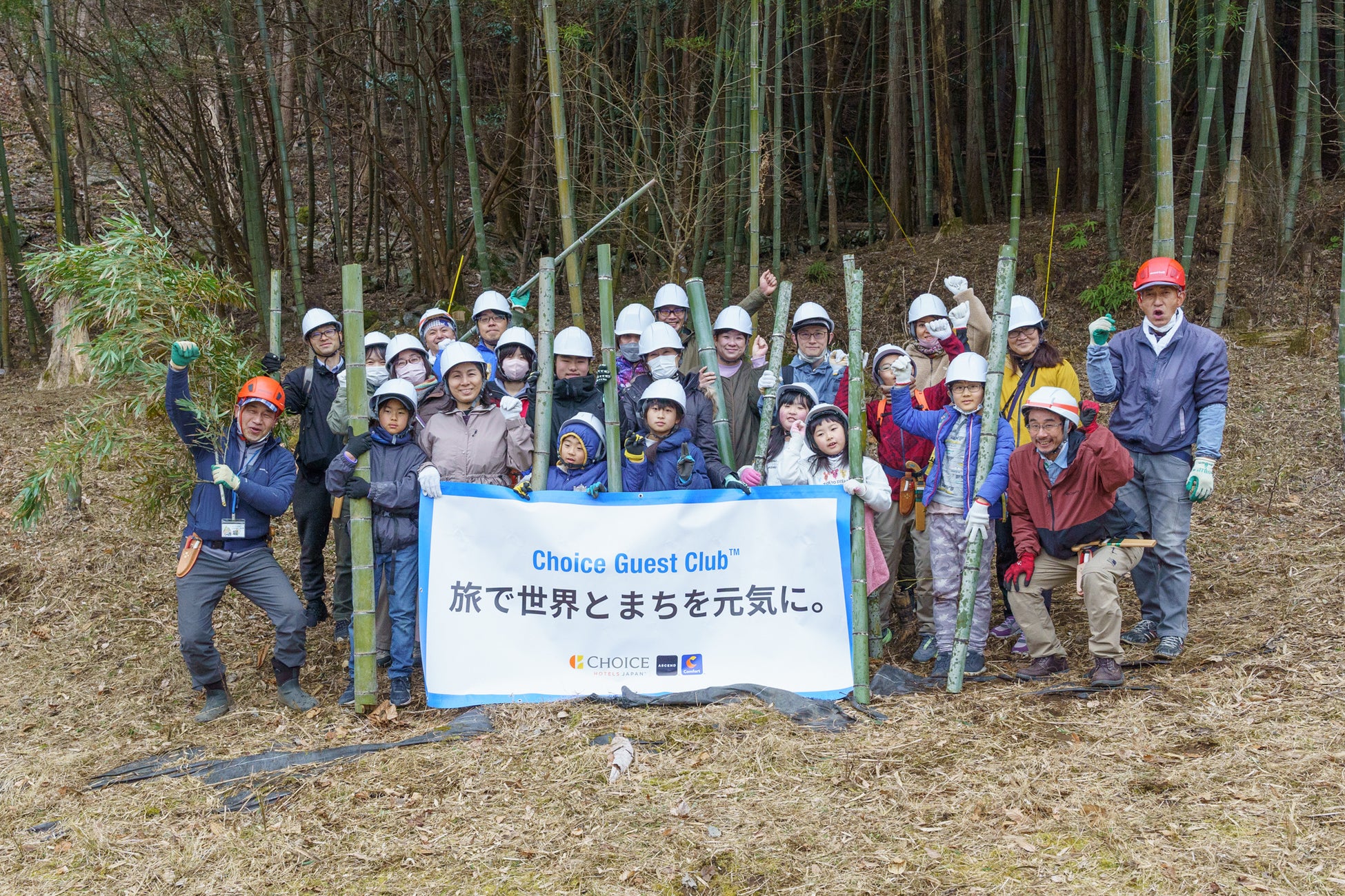 2024年10月と2025年3月に、会員向けの森づくり体験プログラム「森林の楽校」を開催しました。また、ホテルの宿泊者向けには間伐材を使用した製品をノベルティとして採用しました。