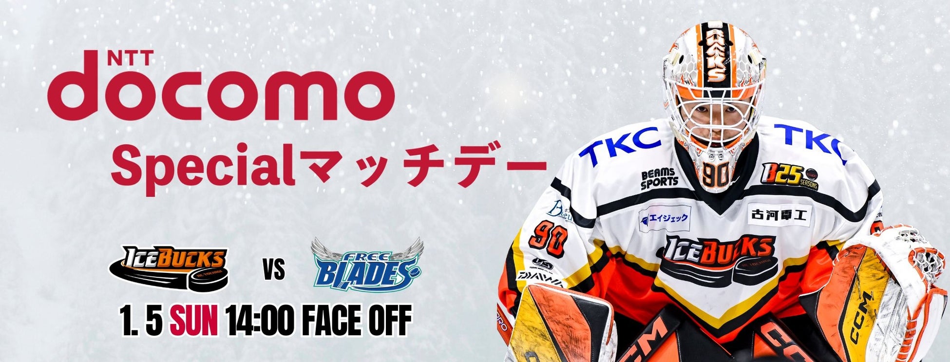 H.C.栃木日光アイスバックスは、2025年1月5日(日)開催の日光シリーズ、東北フリーブレイズ戦を「NTTdocomo Specialマッチデー」として開催いたします。