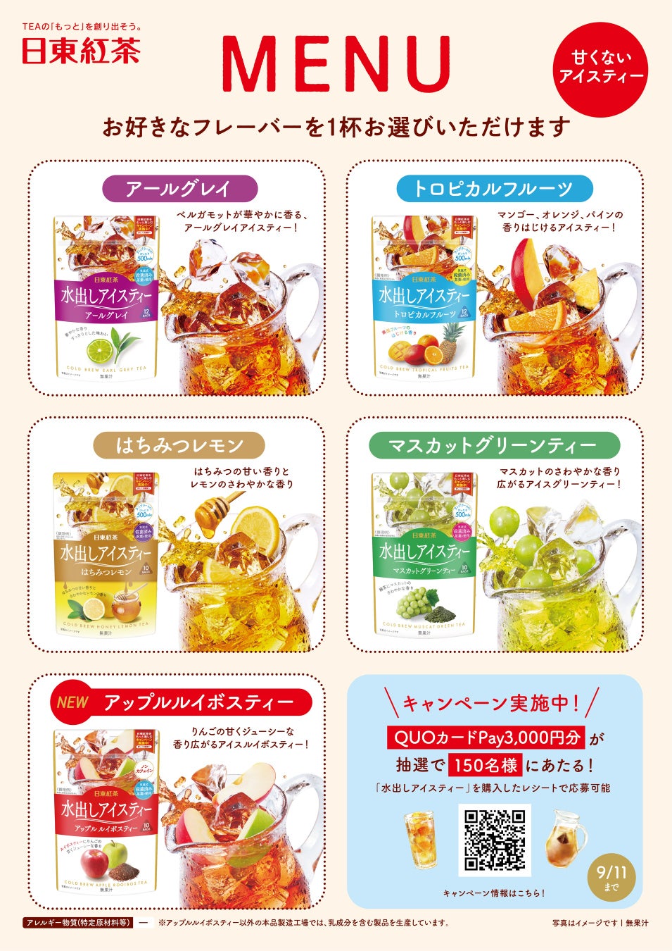 日東紅茶「水出しアイスティー」をごくごく1杯無料でご提供いたします。