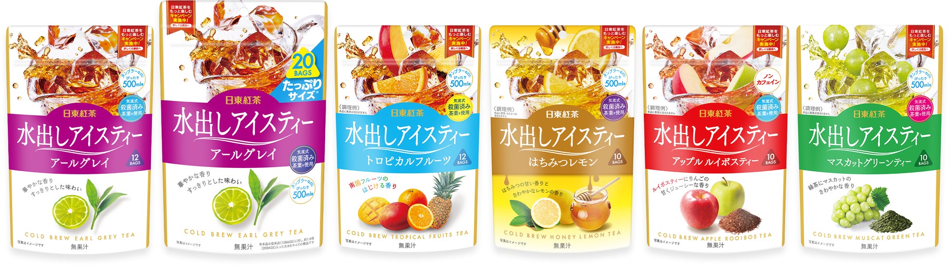 1992年に発売したロングセラーの当シリーズは、品質にこだわり、過熱水蒸気による気流式殺菌を施した水出し用の茶葉を使用。大容量タンブラーなどにもぴったりの500mL用で、すっきりとした紅茶の香りと様々なフレーバーのアイスティーがいつでもどこでもお楽しみいただけます。