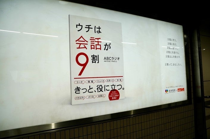 ABCラジオ大阪本社の最寄り駅「阪神電車・福島駅」の駅ホームやコンコース、改札口の柱などをABCラジオの看板でジャック!