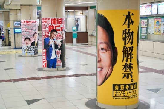 普段、なかなか一般公開されず日の目を見る機会がない番組ポスタ―が合計22種類、駅の柱や電照看板にズラリと並ぶ。